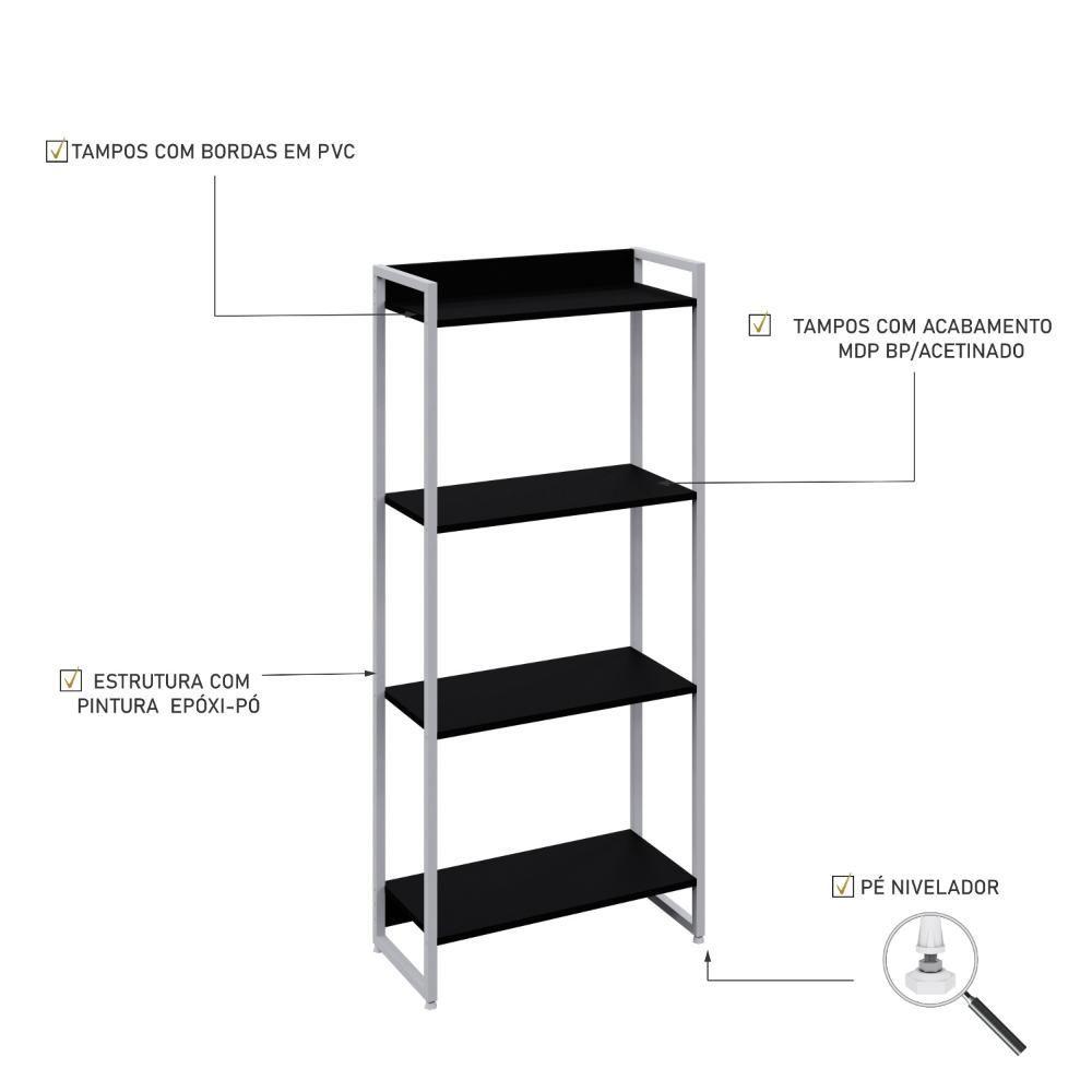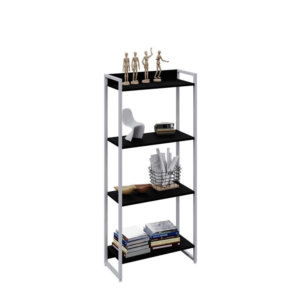 Estante Dynamica 60x30x146cm C/04 Prateleiras Preto ônix / Est.branca Preto ônix / Est.branca