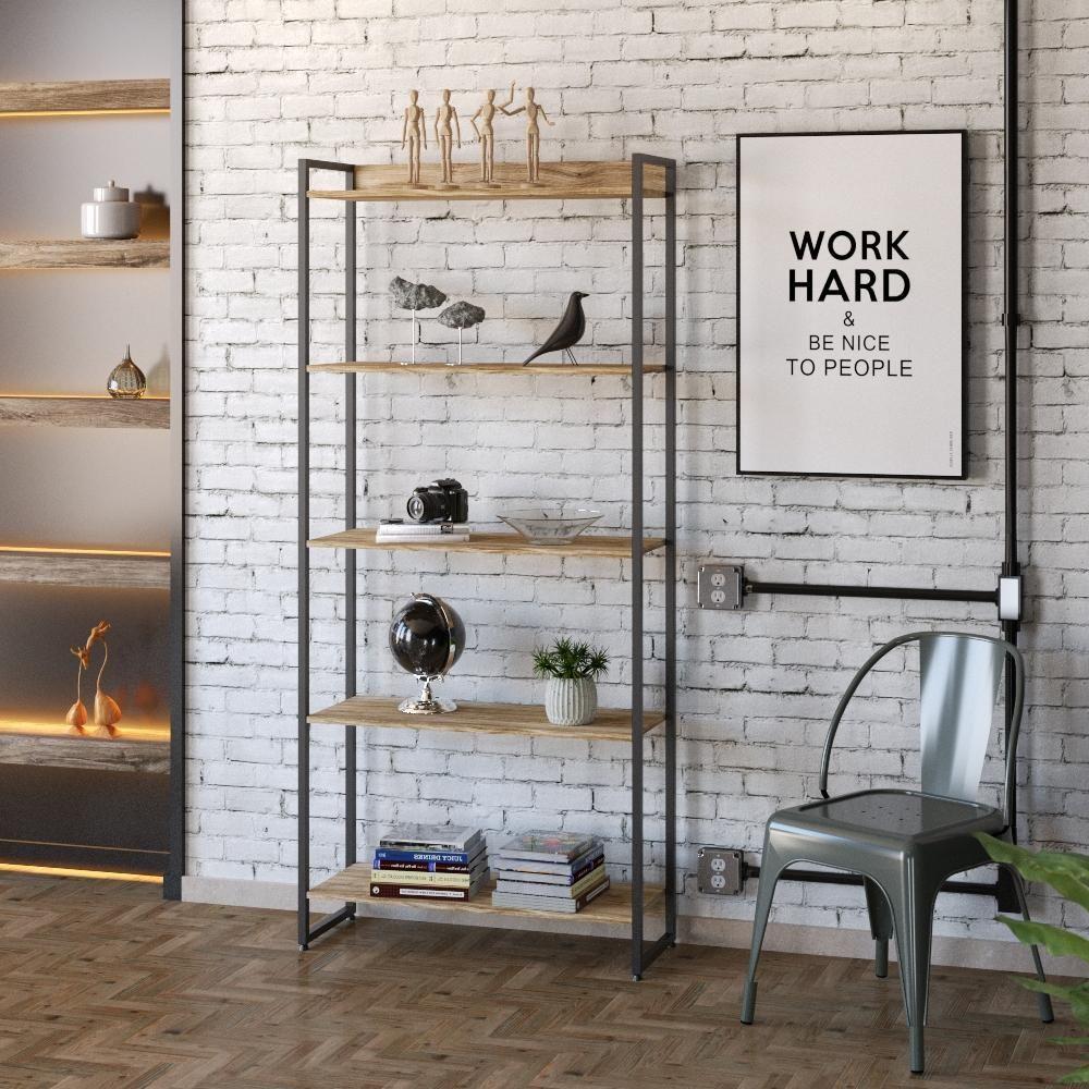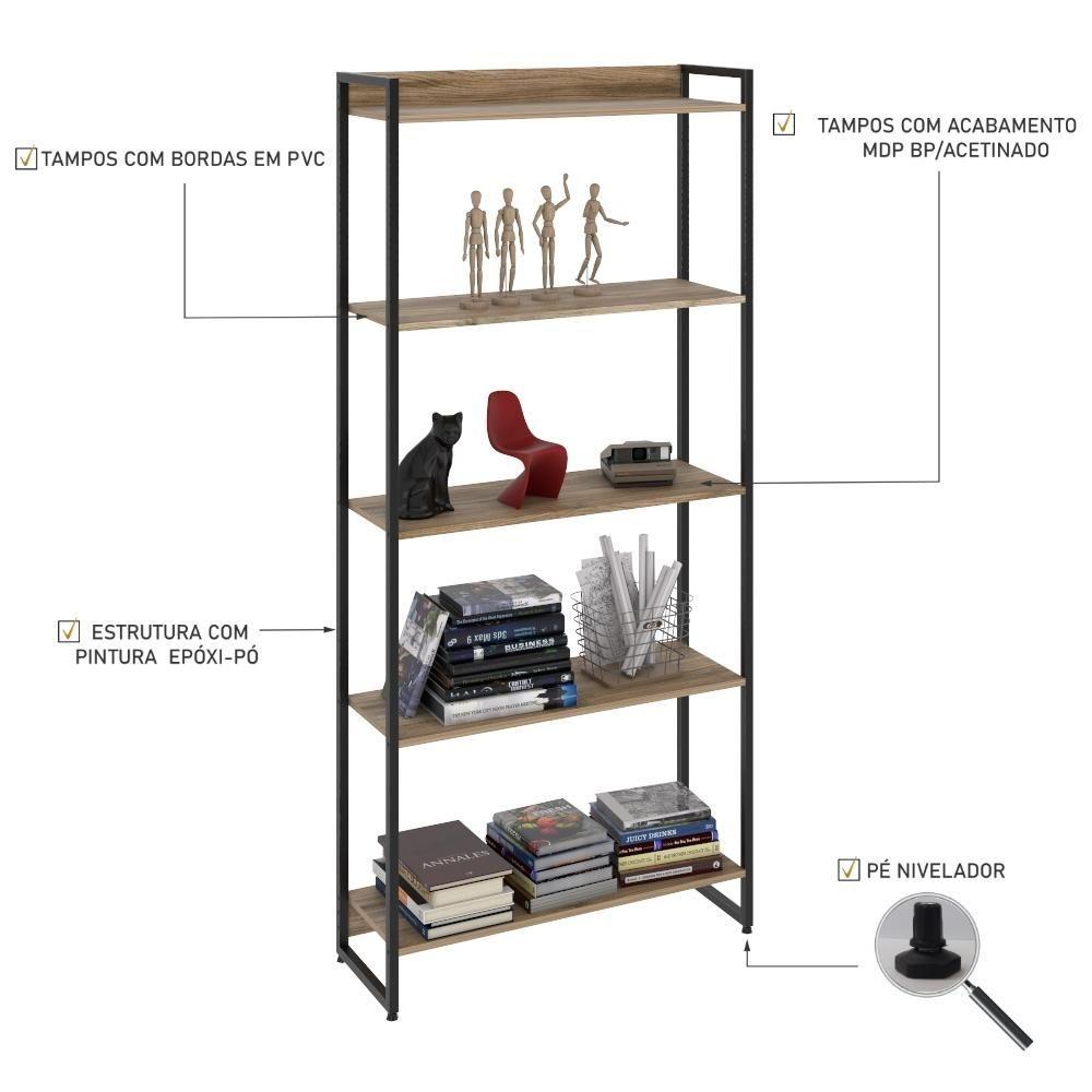 Estante Dynamica 80x30x187cm C/05 Prateleiras Carvalho / Est.preta Carvalho / Est.preta