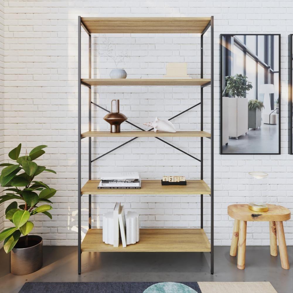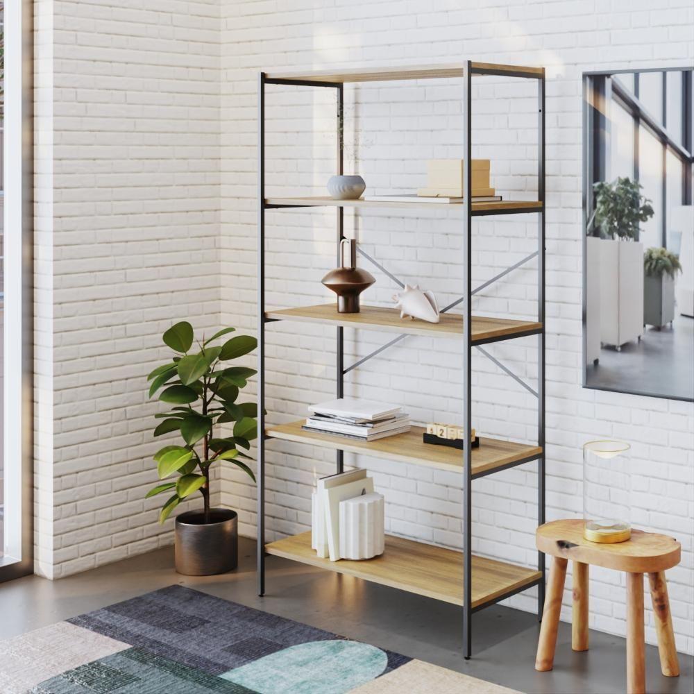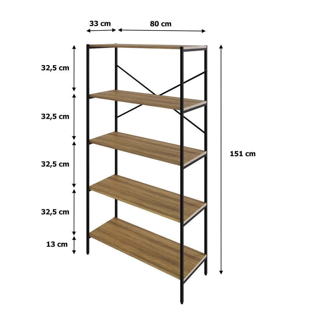 Estante C/05 Prateleiras 152x80x33cm Tub Tueh1585 Lâmina Mel - Est.preta Lâmina Mel / Est.preta
