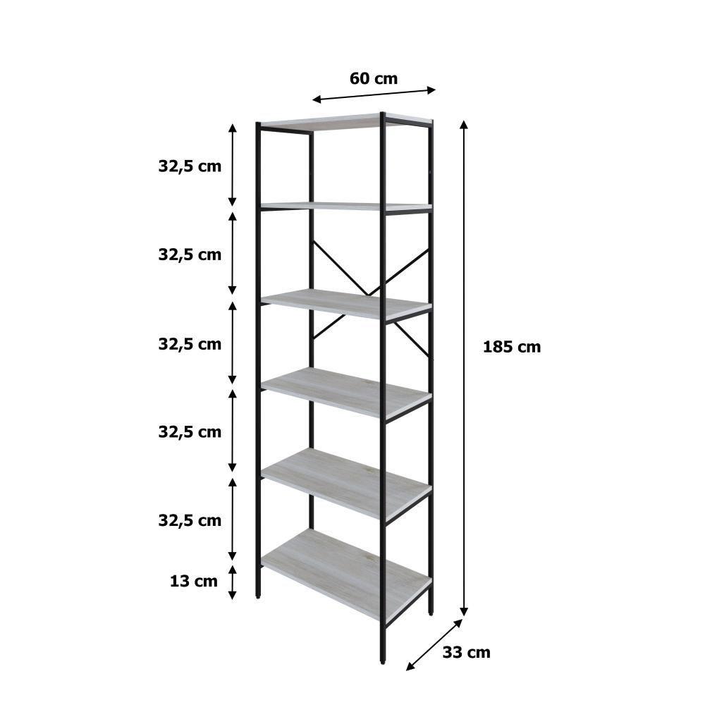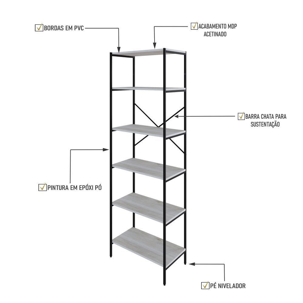 Estante C/06 Prateleiras 186x60x33cm Tub Tueh1866 Snow - Est.preta Snow / Est.preta