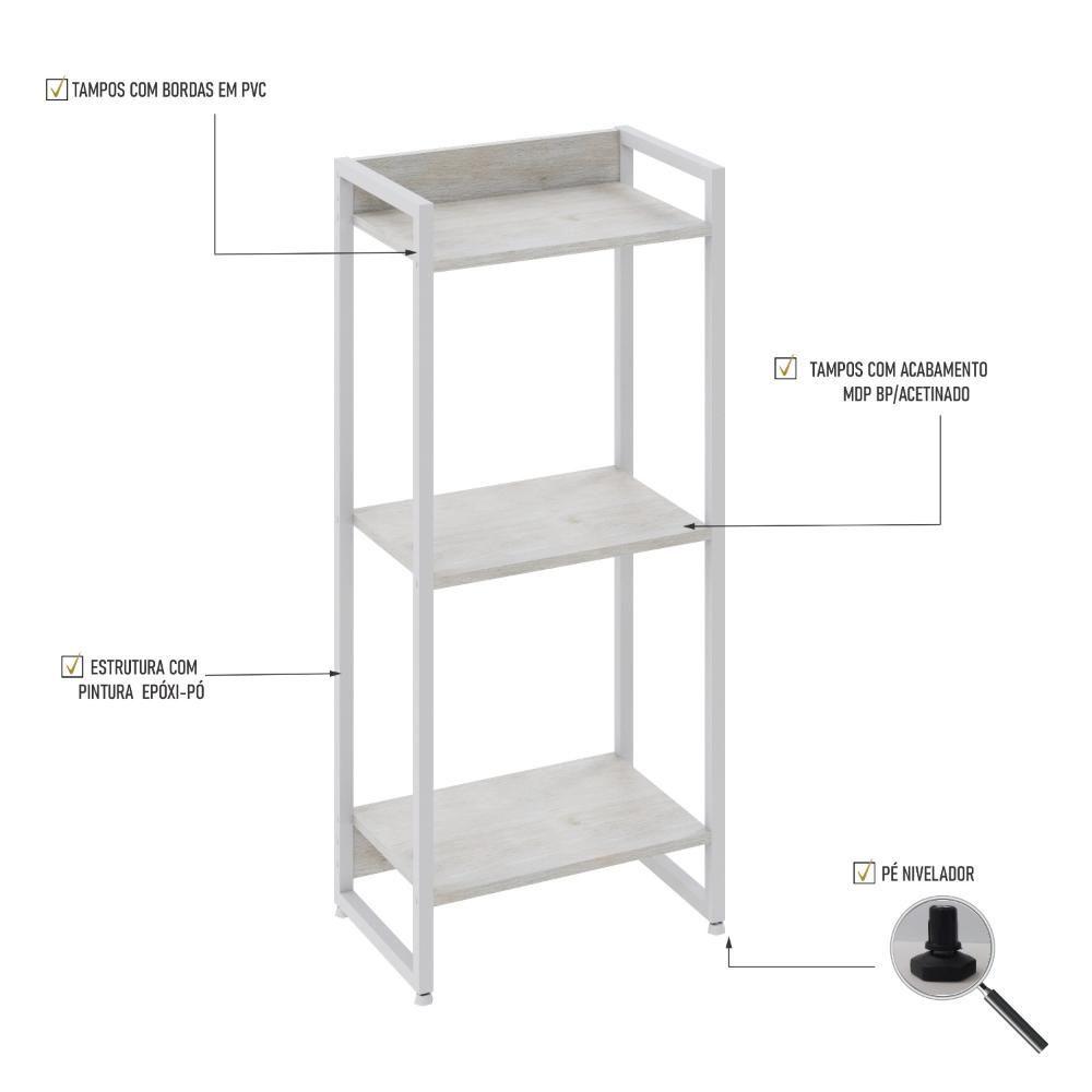 Estante Dynamica 45x30x104cm C/03 Prateleiras Snow / Est.branca Snow / Est.branca