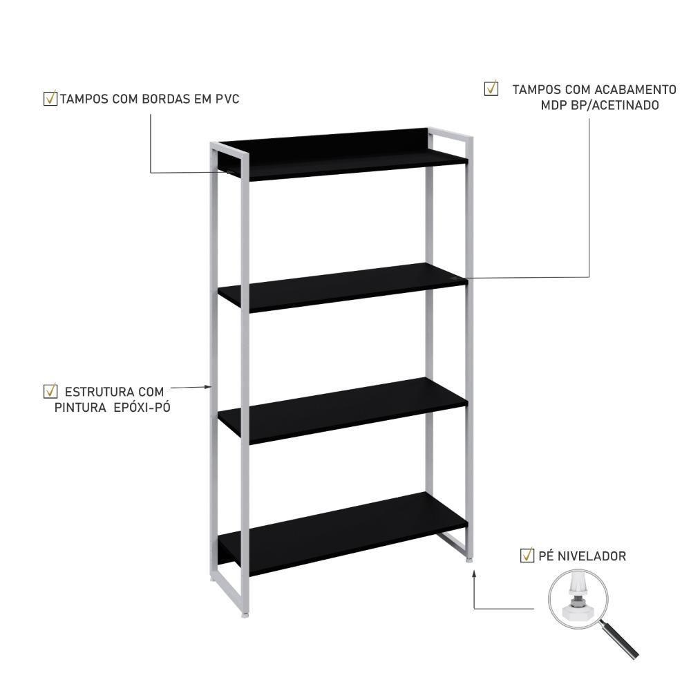 Estante Dynamica 80x30x146cm C/04 Prateleiras Preto ônix / Est.branca Preto ônix / Est.branca
