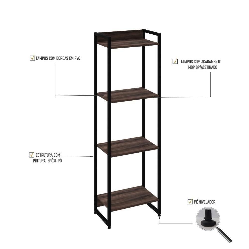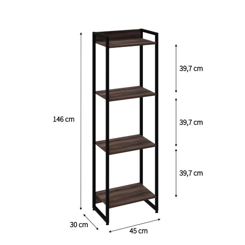 Estante Dynamica 45x30x146cm C/04 Prateleiras Nogal / Est.preta Nogal / Est.preta