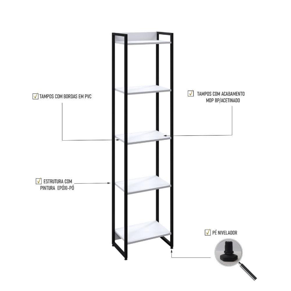 Estante Dynamica 45x30x187cm C/05 Prateleiras Branco Chess / Est.preta Branco Chess / Est.preta