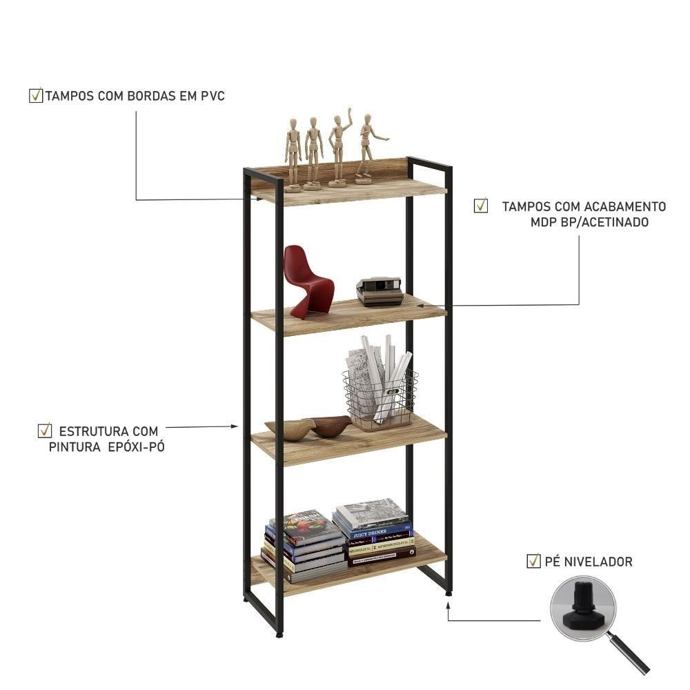 Estante Dynamica 60x30x146cm C/04 Prateleiras Carvalho / Est.preta Carvalho / Est.preta
