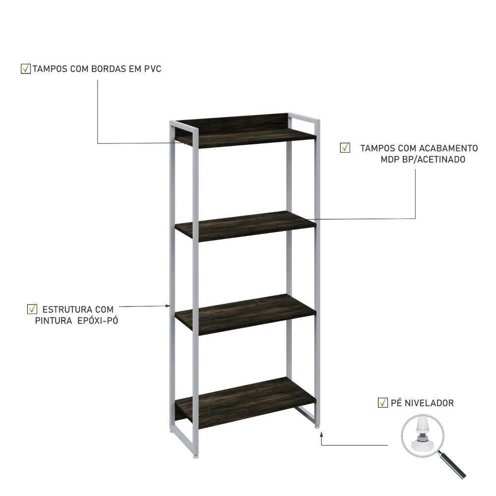 Estante Dynamica 60x30x146cm C/04 Prateleiras Carvalho Dark / Est.branca Carvalho Dark / Est.branca