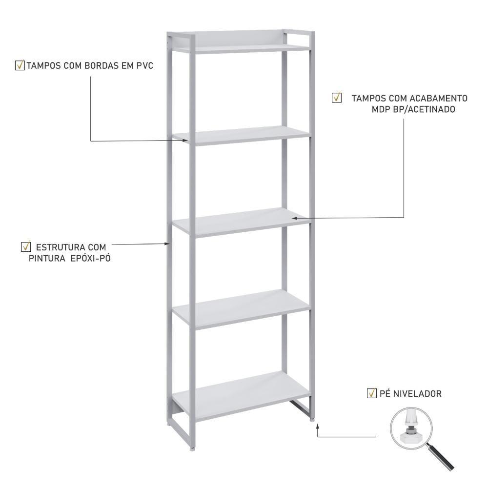 Estante Dynamica 60x30x187cm C/05 Prateleiras Branco Chess / Est.branca Branco Chess / Est.branca