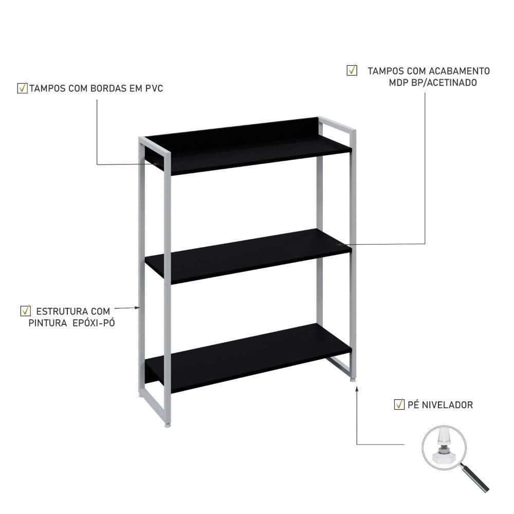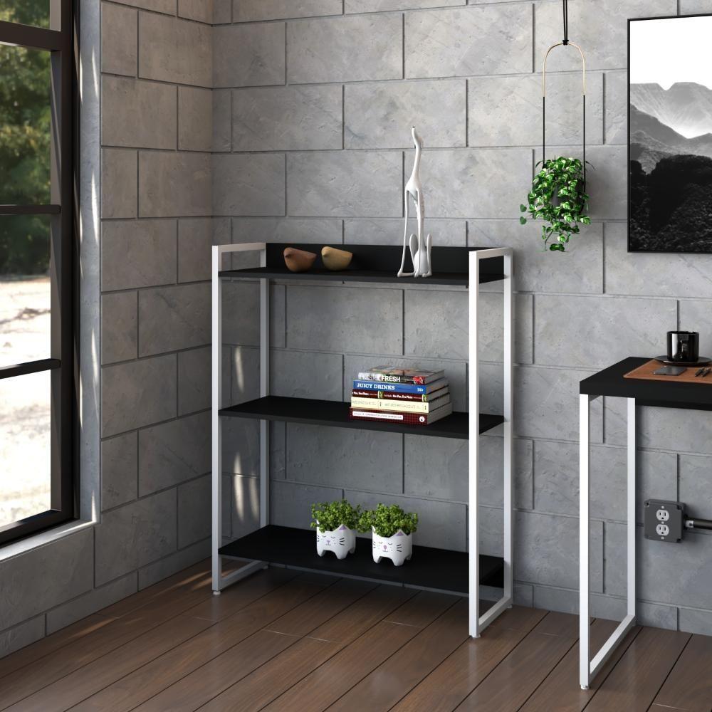 Estante Dynamica 80x30x104cm C/03 Prateleiras Preto ônix / Est.branca Preto ônix / Est.branca