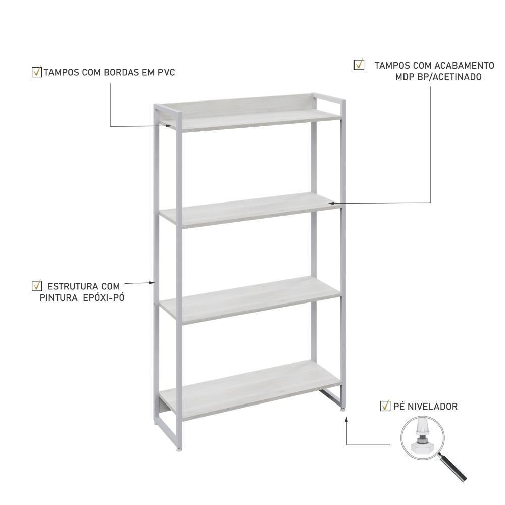 Estante Dynamica 80x30x146cm C/04 Prateleiras Snow / Est.branca Snow / Est.branca