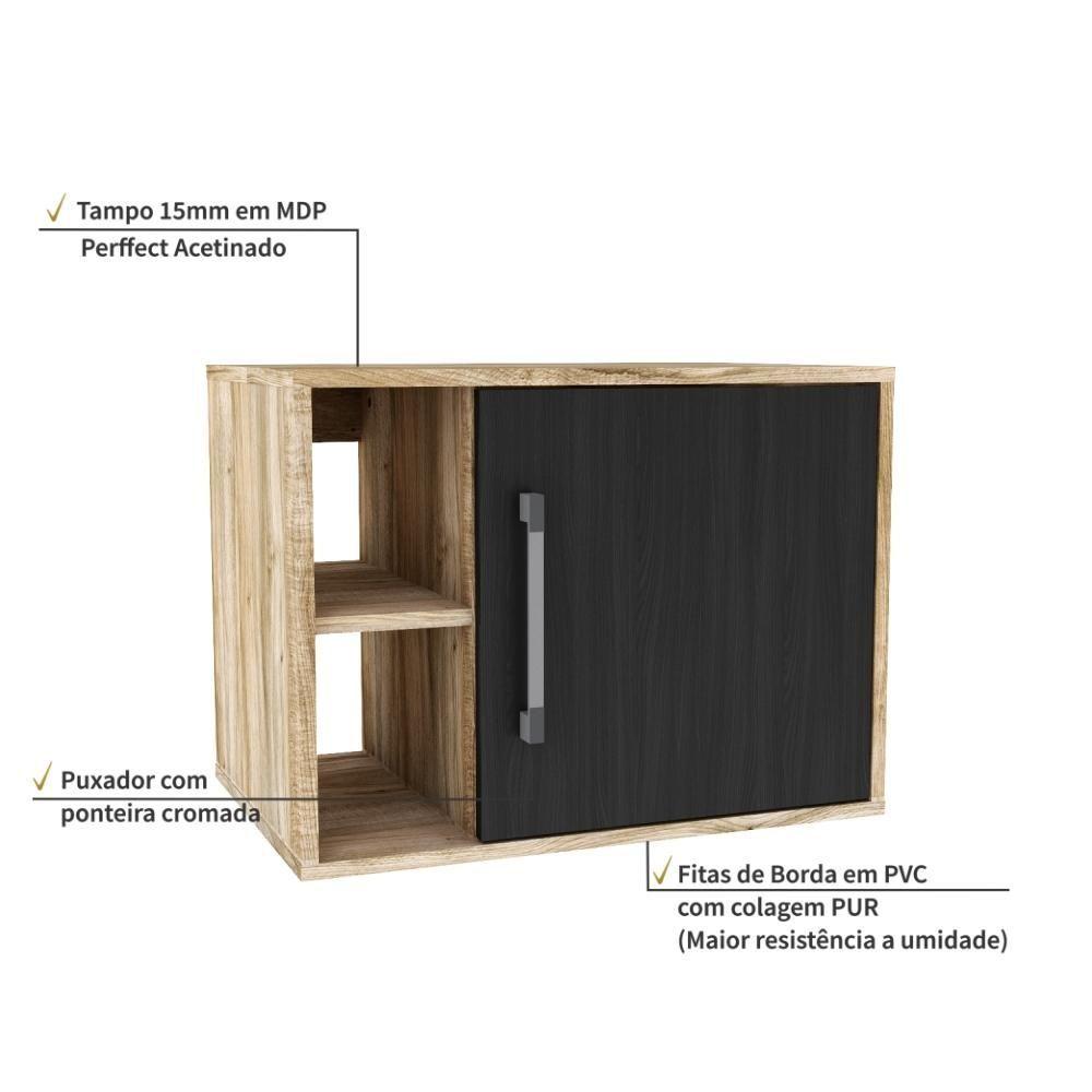 Gabinete Soft 600 Perffect Acetinado Carvalho C-preto ônix