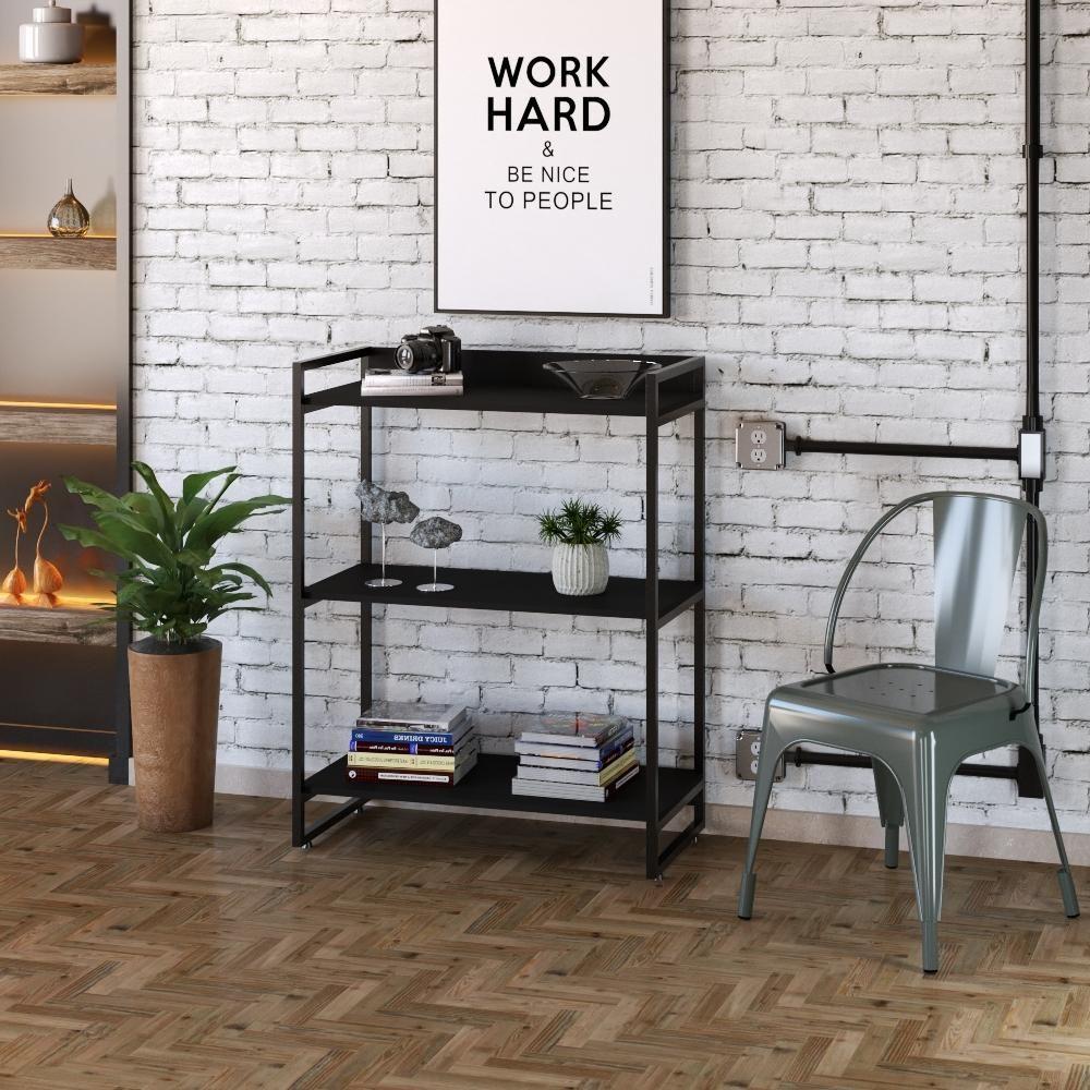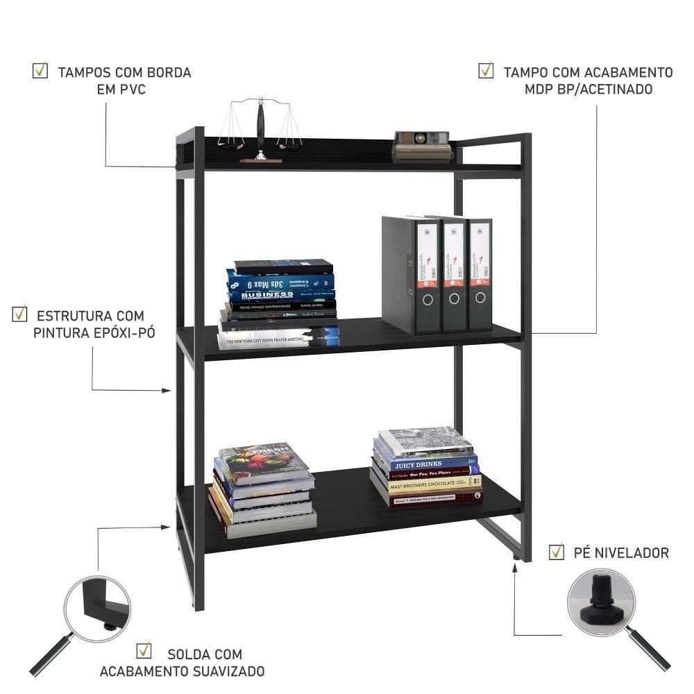 Estante Kuadra 80x40x104cm C/03 Prateleiras Preto ônix / Est.preta Preto ônix / Est.preta