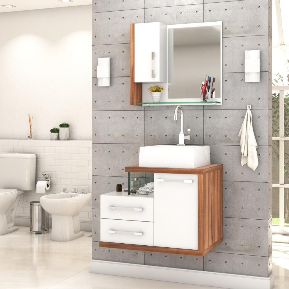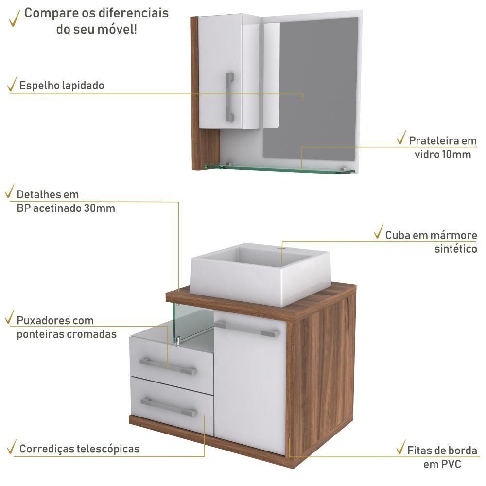 Gabinete Para Banheiro C-cuba Q355 E Espelheira Legno 650 Branco Chess C-nogal