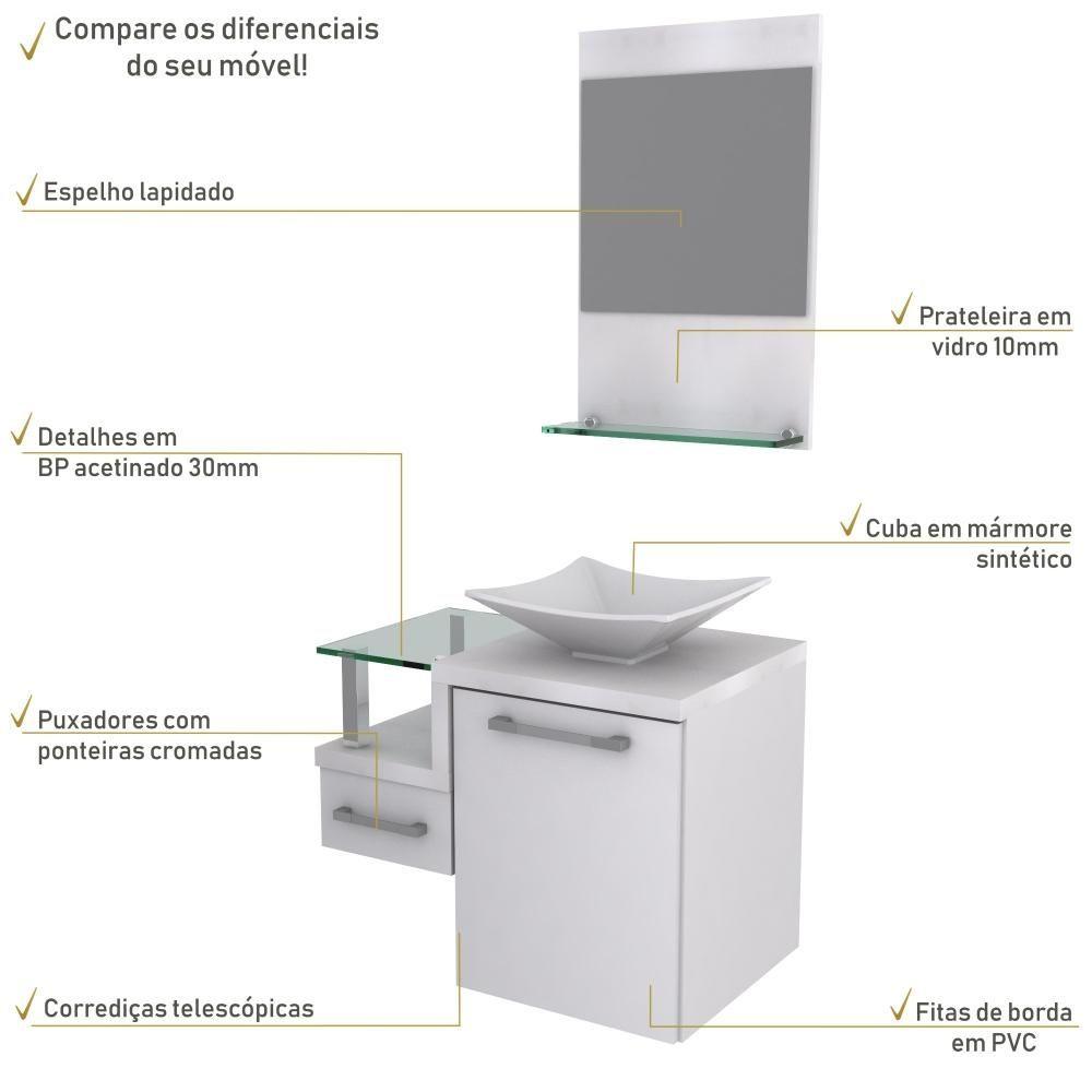 Gabinete Para Banheiro C-cuba L34 E Espelheira Legno 631 Branco Chess C-branco Chess