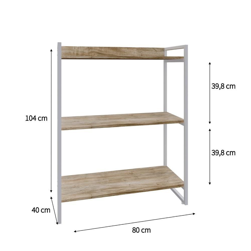 Estante Kuadra 80x40x104cm C/03 Prateleiras Carvalho / Est.branca Carvalho / Est.branca