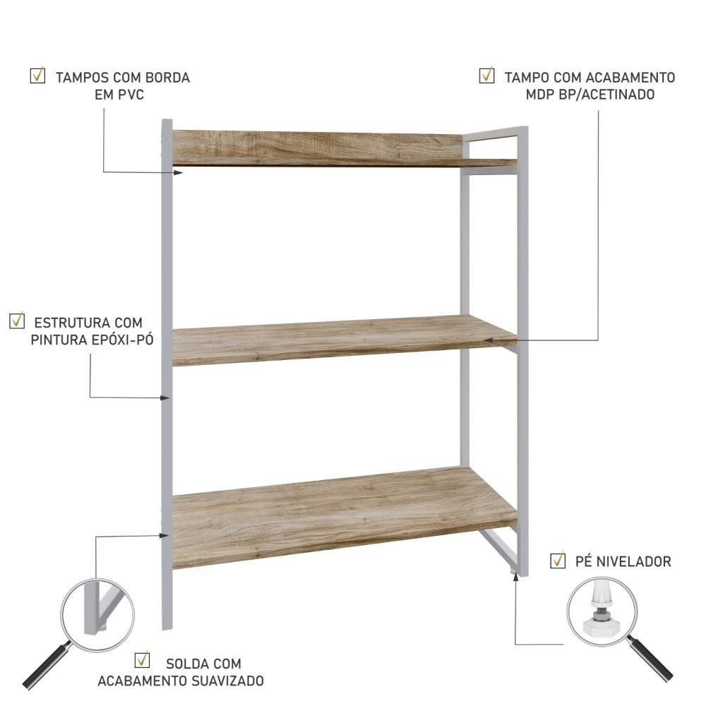 Estante Kuadra 80x40x104cm C/03 Prateleiras Carvalho / Carvalho / Sobre o ProdutoEstante Kuadra 80X40X104cm C/03 Prateleiras Amadeirado / Est.BrancaDescrição do Produto:A Estante Kuadra KUES83 é um produto prático e versátil, que pode ser utilizado em diversos ambientes, como quarto e escritório, na sala, cozinha ou seu depó Linha Kuadra tem seu design com inspiração no estilo industrial, que remete muito a decoração usada nos Lofts das grandes metrópoles nos anos 60 e 70. Harmonizando o metal e os tons de madeira, foram projetados móveis versáteis e com estilo, que podem compor ambientes íveis cheios de personalidade, perfeitos para você decorar sua casa ou seu trabalho, tendo um resultado que caminha do estilo rústico ao Inclusos:1 EstanteDimensões dos Produtos:Estante Kuadra 80X40X104cm C/03 Prateleiras Amadeirado / 80 x 40 x 104 cmInformações Logísticas (Comp. X Prof. X Alt.) 103 x 41 x 11 cm - Peso: 14,66 KgPeso Total: 14,66 KgObservações:Não acompanha acessórios decorativos. Imagens meramente ilustrativas.Informações Técnicas / Características:- Cor do Produto: Amadeirado / - Marca: Compace- Modelo: KUES83- Linha: Kuadra- Material: Mdp- Material da Estrutura / Pés: Aço- Acabamento: BP Acetinado- Escala de Brilho: Fosco- Fita de Borda: Pvc- Possui Portas: Não - Possui Prateleiras: 3- Peso Máximo por Prateleira: 10 kg- Possui Pés: 2- Pés Niveladores: Sim - Acabamento Estrutura: Epóxi-Pó Texturizado - Suporta Até (kg): 30 kg- Comprimento: 80cm- Profundidade: 40cm- Altura: 104cm - Peso Lí.: 13,97Kg- Recomendações de Uso, Manutenção e Limpeza: Para a limpeza, utilize flanela seca ou pano macio levemente umedecido em água. Utilize um pano seco em seguida. Evite com produtos químicos e não utilize nenhum tipo de esponja de aço.- Necessita de Montagem: Sim / Acompanha Manual de Montagem- Complexidade da Montagem: Média- Garantia: 6 meses Material: Mdp | Acabamento: BP Acetinado | Escala de Brilho: Fosco | Fita de Borda: Pvc | Material da Estrutura: Aço | Acabamento da Estrutura: Epóxi-Pó Texturizado | Quantidade de caixas de embalagem: 1 | Marca: Compace | Modelo: Estante Kuadra | Produto: Estante | Cômodo indicado: Escritórios | Cor: Multicolorido | Tonalidade: Multicolorido | do modelo: KUES83 | Baterias são necessárias?: false | Palavras-chave de Pesquisa: Não Aplicável | da peça: KUES83 | de caixas: 1 | Componentes incluídos: Manual de montagem e kit acessórios | Fabricante: Compace | Quantidade de itens: 1 | Principais Características do Produto 0: Escritório | Certificação de teste externa: Não aplicável | Principais Características do Produto 1: BP Acetinado | Principais Características do Produto 2: Estrutura de aço | Exige montagem: true | Acabamento do móvel: BP Acetinado | Peso do item: ;unit=kilograms | Dimensões do item P x L x A: width#value=80;depth#unit=centimeters;height#value=104;height#unit=centimeters;depth#value=40;width#unit=centimeters | Tipo de Mesa: | País de Origem: | Duração da Garantia: | Coleção de Antiguidade: | Recursos da Mesa: | Base da Mesa: | Recursos da Escrivaninha: | Móvel Dobrável: | Montagem: | Dimensões do Produto (A x L x C), sem a caixa de embalagem: | Desing da Escrivaninha: | Tipo de Garantia: | Produto personalizado: | Motivo de Isenção Anvisa: | Nr. do Lote do Produto: | Formato da Escrivaninha: | Shape: | Data de validade Anvisa: | Tamanho Do Pacote: | Comprimento: | Código Anvisa do Produto: | Altura da Mesa: | Formato do Espelho: | de Assentos: | Qtd. de Produto no Lote: | Funcionalidades: | Temas de Estampas: | Quantidade: | Estilo: Cor: Carvalho /