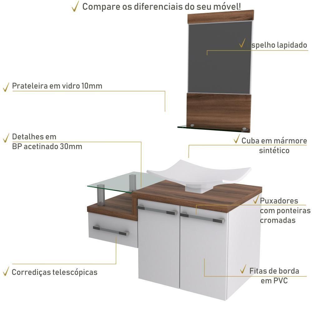 Conjunto Balcão C-cuba F44 E Espelheira Legno 831 Branco Chess C-carvalho Dark Branco Chess C-nogal