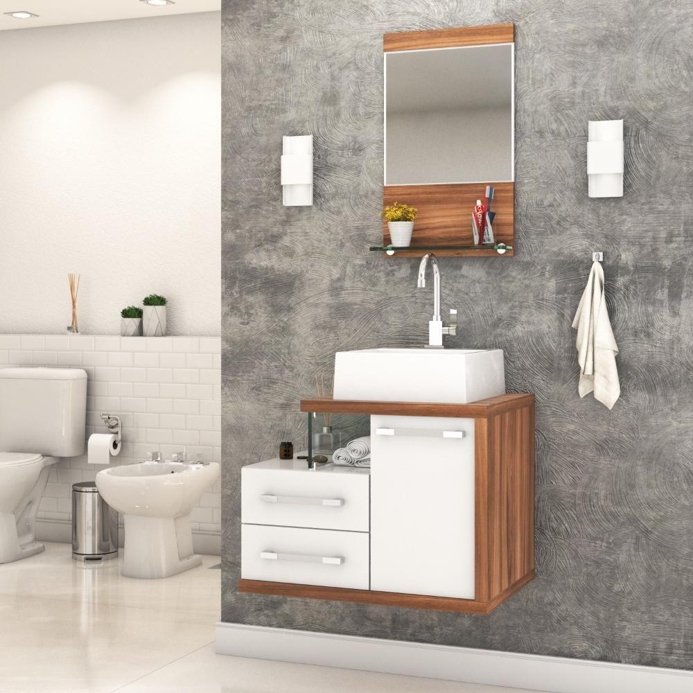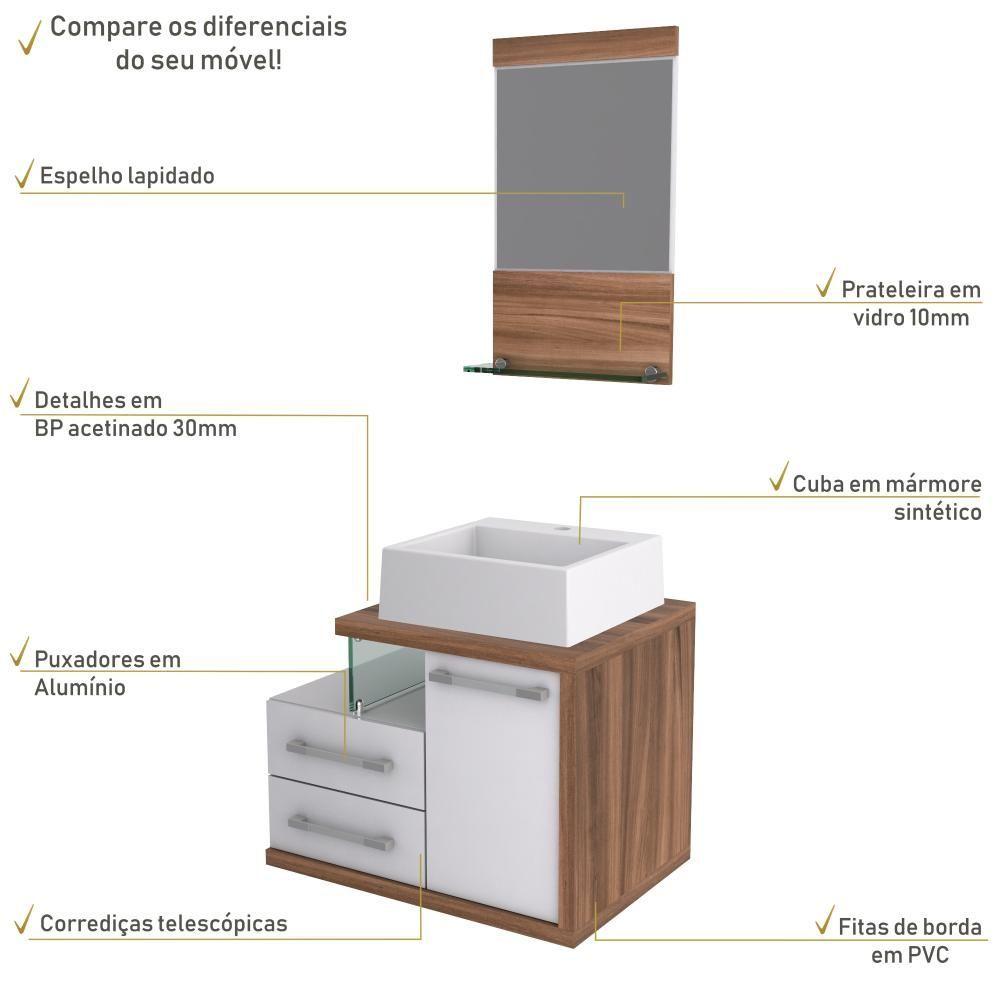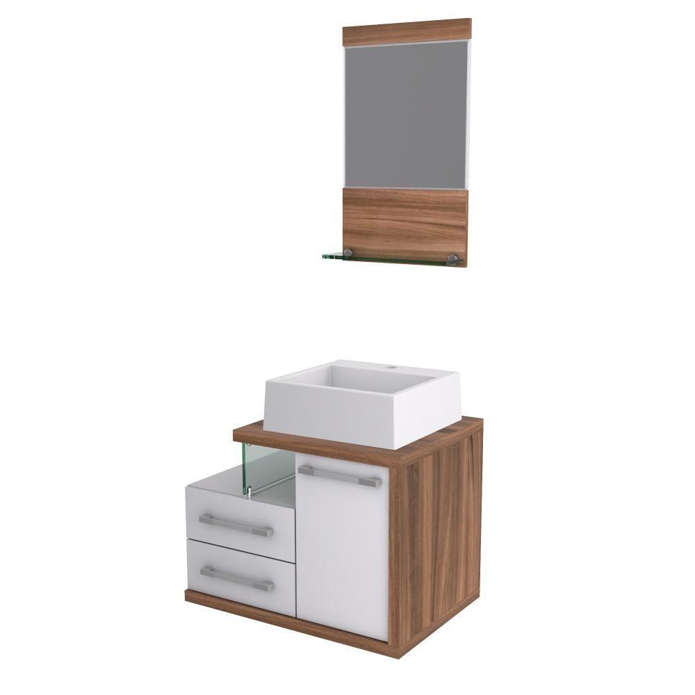 Gabinete Para Banheiro C-cuba Q355 E Espelheira Legno 651 Branco Chess C-nogal