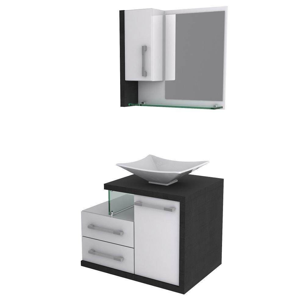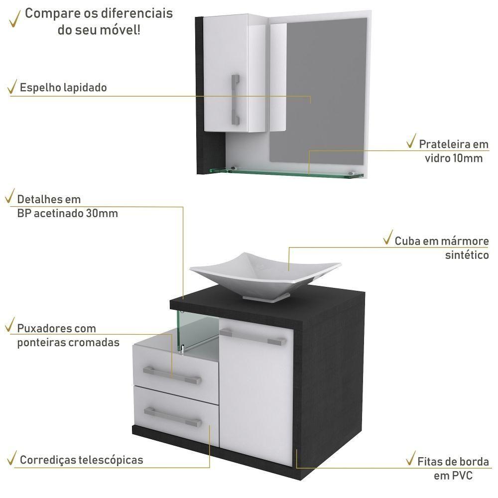 Conjunto Balcão C-cuba L38 E Espelheira Legno 650 Branco Chess C-nogal Branco Chess C-preto ônix