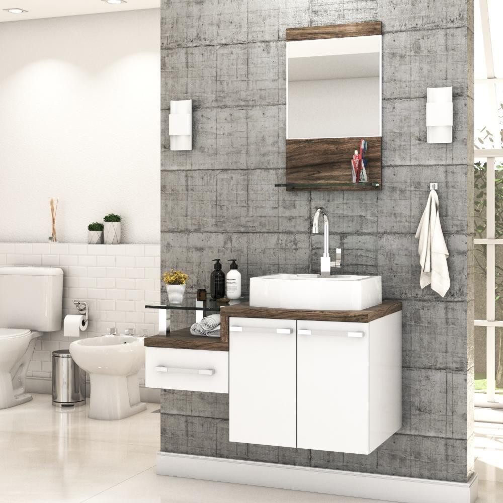 Conjunto Balcão C-cuba Aria 41 E Espelheira Legno 831 Branco Chess C-carvalho Branco Chess C-carvalho Dark