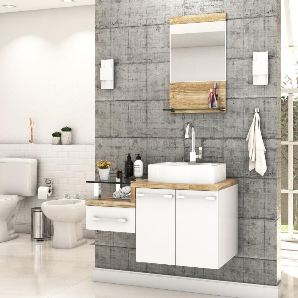 Conjunto Balcão C-cuba Aria 41 E Espelheira Legno 831 Branco Chess C-branco Chess Branco Chess C-carvalho