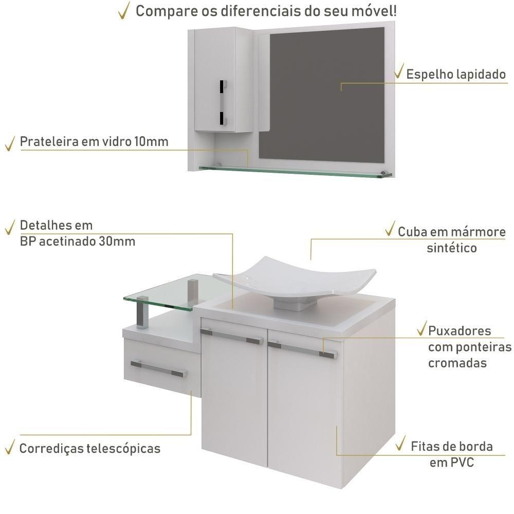 Conjunto Balcão C-cuba F44 E Espelheira Legno 830 Perffect Acetinado Branco Chess C-branco Chess