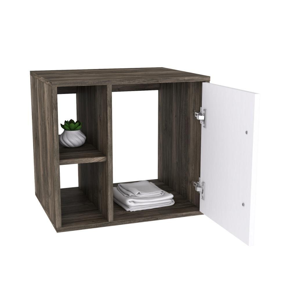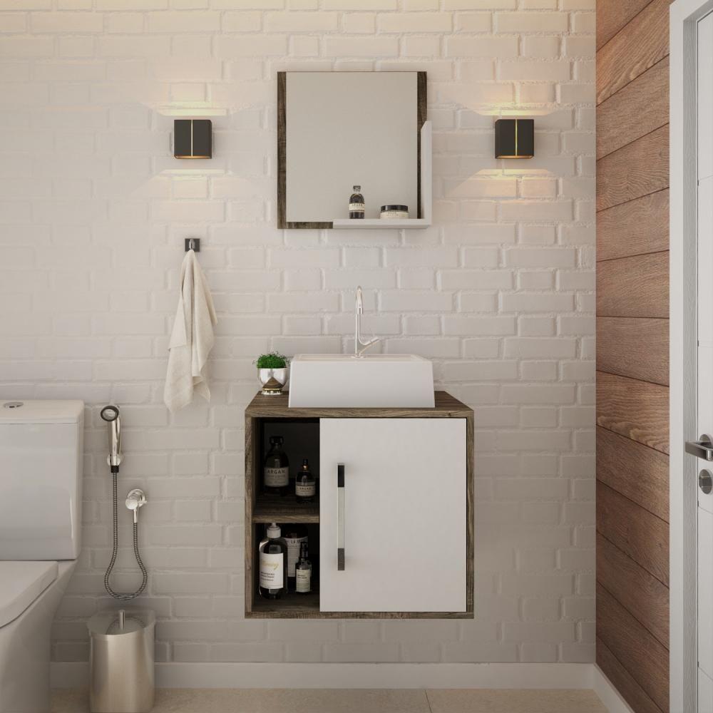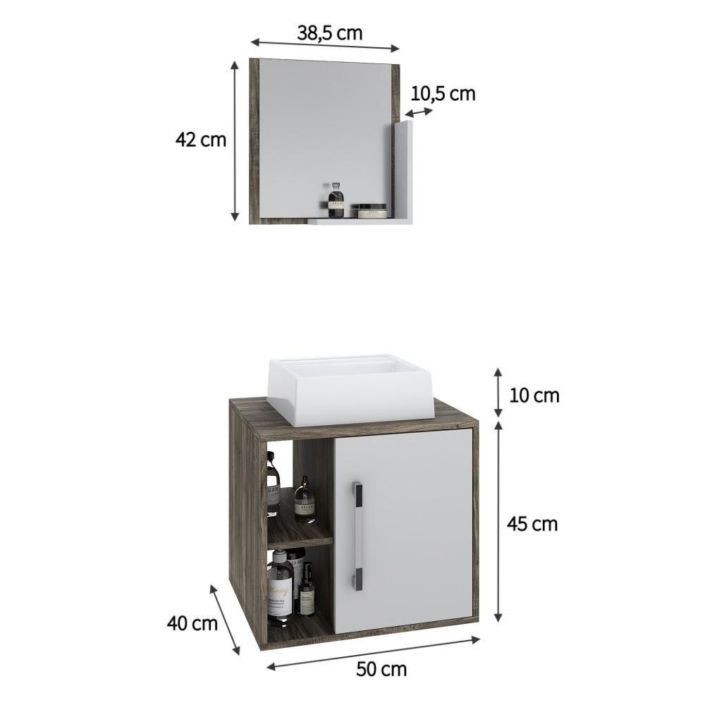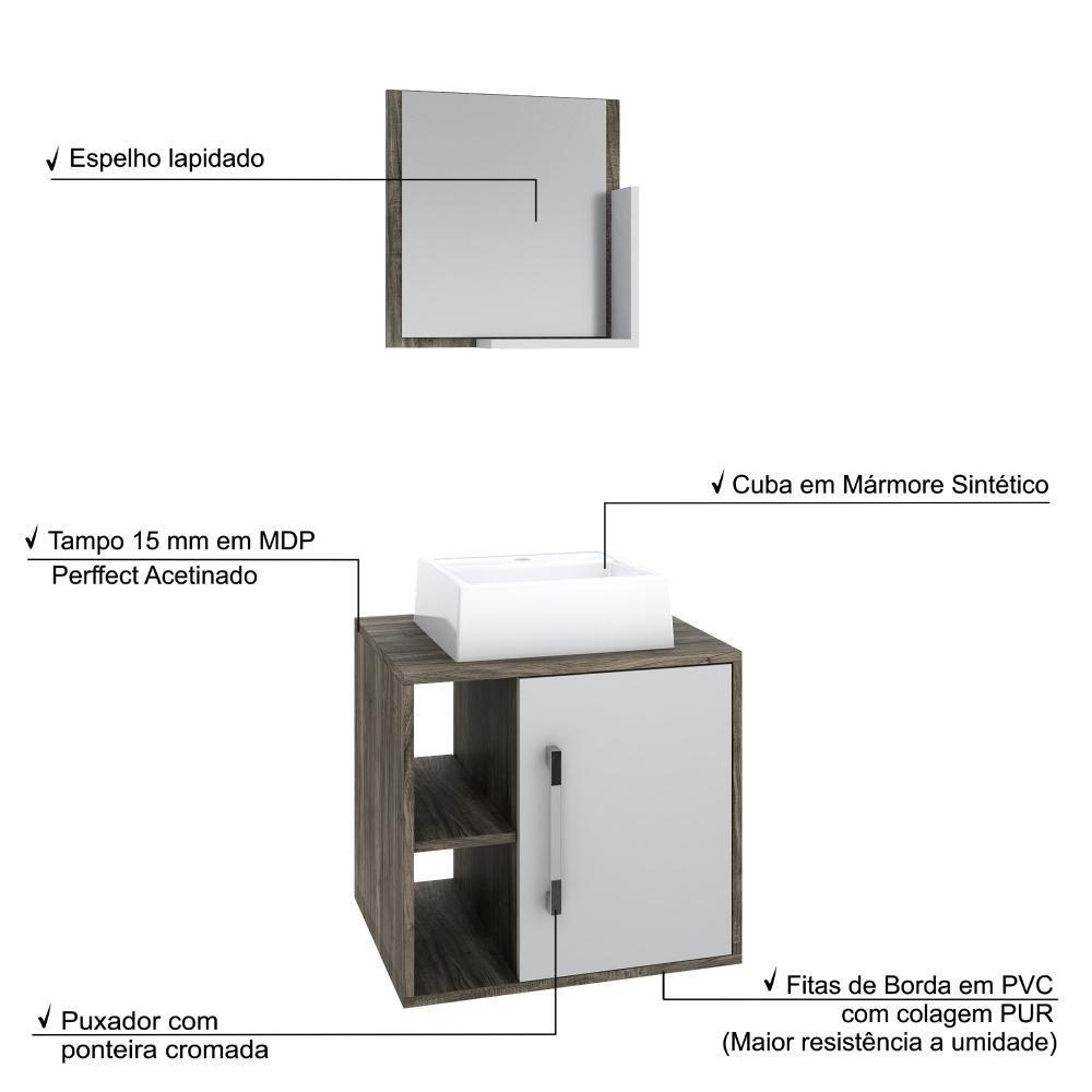 Conjunto Balcão C-cuba Q32 E Espelheira Soft 500 Carvalho Dark Carvalho Dark C-branco Chess