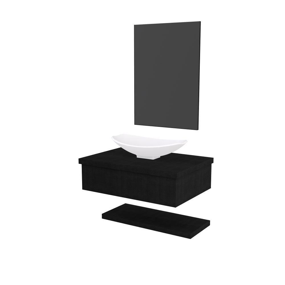 Conjunto Bancada C-cuba L45, Prateleira E Espelheira Metrópole 606 Nogal Preto ônix