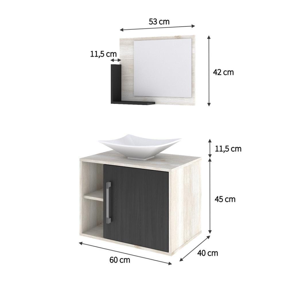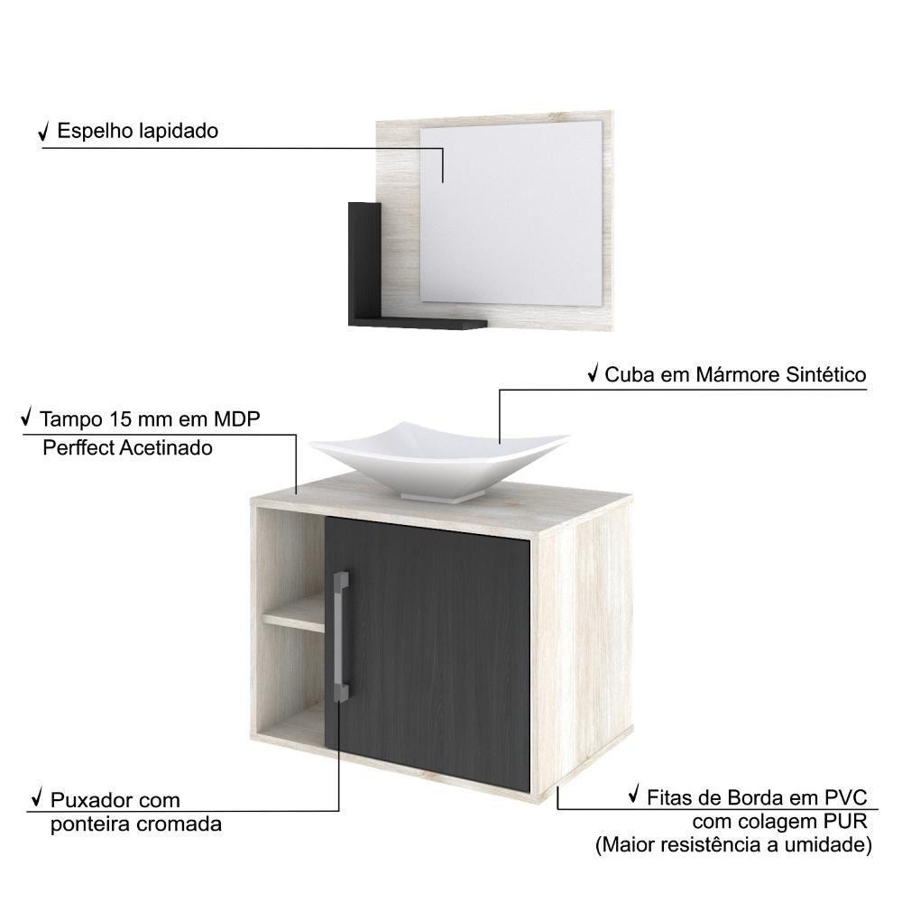 Conjunto Balcão C-cuba L38 E Espelheira Soft 600 Snow C-branco Chess Snow C-preto ônix