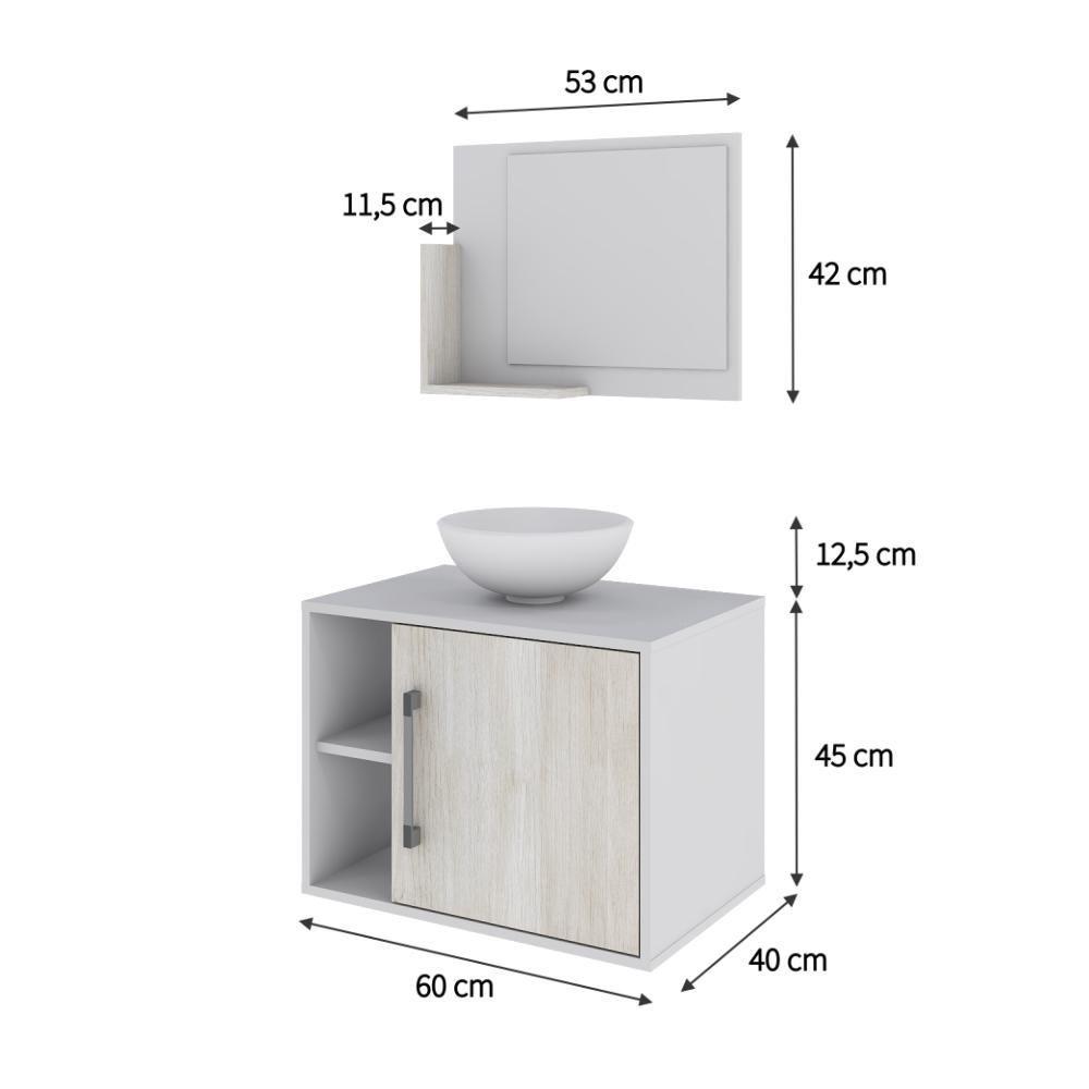 Conjunto Balcão C/cuba R30 E Espelheira Soft 600 Branco Chess C/preto ônix Branco Chess C/snowSobre o ProdutoConjunto Balcão C/Cuba R30 e Espelheira Soft 600 Branco ChessDescrição do Produto:O Conjunto Balcão C/Cuba e Espelheira Soft 600 KTSF600 tem design compacto, perfeito para pequenos espaços, conta com uma prateleira lateral e uma cuba de apoio, além da linha Basic traz móveis funcionais e de design tradicional, aliando simplicidade e estilo para seu ambiente de banheiro!Itens Inclusos:1 Conjunto Balcão C/Cuba e EspelheiraDimensões dos Produtos:Gabinete: 60 x 40 x 45 cmEspelheira: 53 x 10,5 x 42 cmCuba 30,5 x 30,5 x 12,5 cmInformações Logísticas (Comp. X Prof. X Alt.) 64 x 45 x 26 cm - Peso: 20,14 KgPeso Total: 20,14 KgObservações:Não acompanha acessórios decorativos. Imagens meramente ilustrativas.Informações Técnicas / Características:- Cor do Produto: Branco Chess- Cor do Predominante: Branco- Marca: Compace- Modelo: KTSF600- Linha: Basic- Material: Mdp - Acabamento: Perffect Acetinado- Escala de Brilho: Fosco- Fita de Borda: Pvc- Possui Portas: 1- Tipo de Porta: Bater- Tipo da Dobradiça: Metálica - Material do Puxador: Abs- Possui Prateleiras: 2- Peso Máximo por Prateleira: 1 kg Espelheira / 3 kg Balcão- Possui Pés: Não, suspenso - Possui Espelho: Sim- Possui Vidro: Sim- Acompanha Cuba / Lavatório: Sim, de Mármore Sintético- Furação para Cuba / Lavatório: Não- Tipo da Cuba: Apoio- Cor da Cuba: Branca- Suporta Até (kg): 16 kg - Peso Lí.: 18,72Kg- Recomendações de Uso, Manutenção e Limpeza: Para a limpeza, utilize flanela seca ou pano macio levemente umedecido em água. Utilize um pano seco em seguida. Evite com produtos químicos (solventes, thinner, acetona, etc) e não utilize nenhum tipo de esponja de aço.- Necessita de Montagem: Sim / Acompanha Manual de Montagem- Complexidade da Montagem: Média: pode ser montado por mais de uma pessoa e/ou necessite de maior conhecimento para montagem.- Garantia: 6 meses Material: Mdp | Acabamento: Perffect Acetinado | Escala de Brilho: Fosco | Fita de Borda: Pvc | Possui Portas: 1 | Tipo de Porta: Bater | Tipo da Dobradiça: Metálica | Limite de unidades por venda: É possível comprar até 1 unidade por venda. | Comprimento: 60 | Largura: 40 | Quantidade máxima de pedido: 1 | Altura: 45 | Profundidade: 40 | Preço Tabelado: | Cor: Multicolorido | Certificação de teste externa: Não Aplicável | Baterias são necessárias?: false | Palavras-chave de Pesquisa: Não aplicável | Fonte de energia: Não aplicável | Fabricante: Compace | Principais Características do Produto 0: | Dimensões do item P x L x A: | Exige montagem: | Is Fragile: | Principais Características do Produto 2: | da peça: | Principais Características do Produto 1: | Componentes incluídos: | Peso do item: | do modelo: | de caixas: | Quantidade de itens: Cor: Branco Chess C/Snow