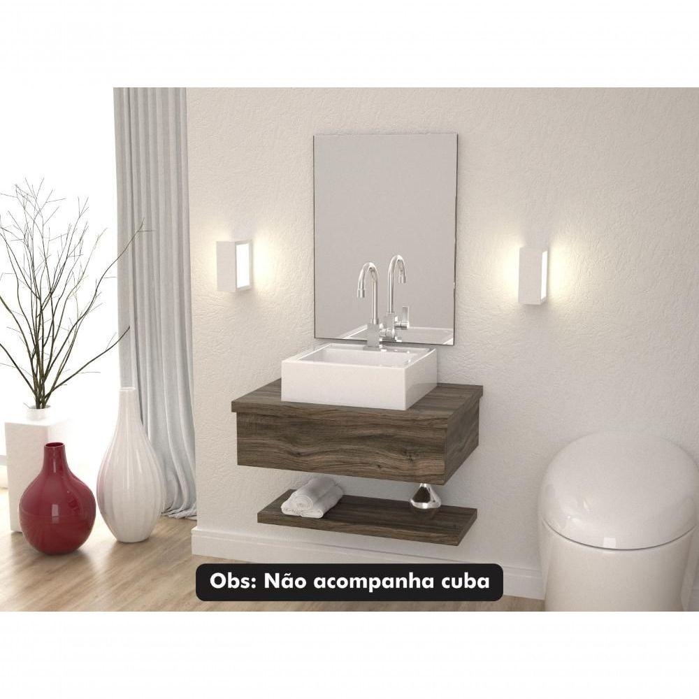 Conjunto Bancada, Prateleira E Espelheira Ktme607 Carvalho Carvalho Dark