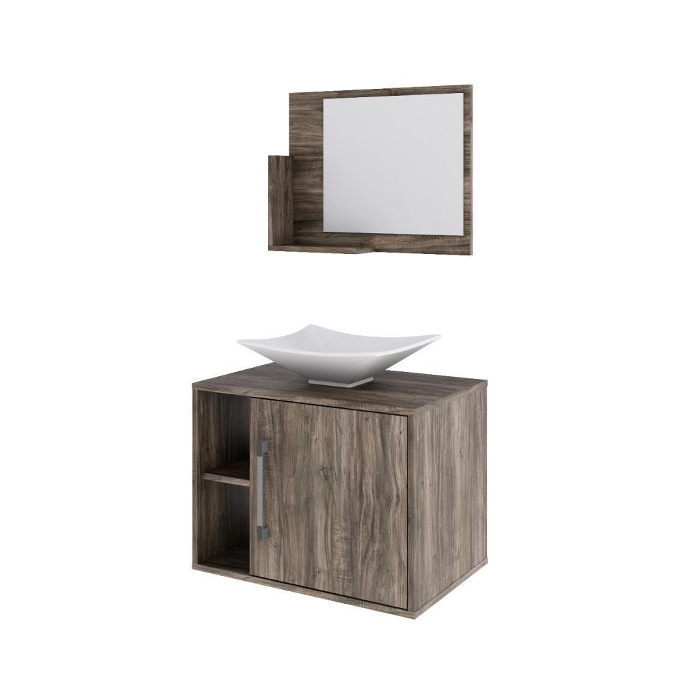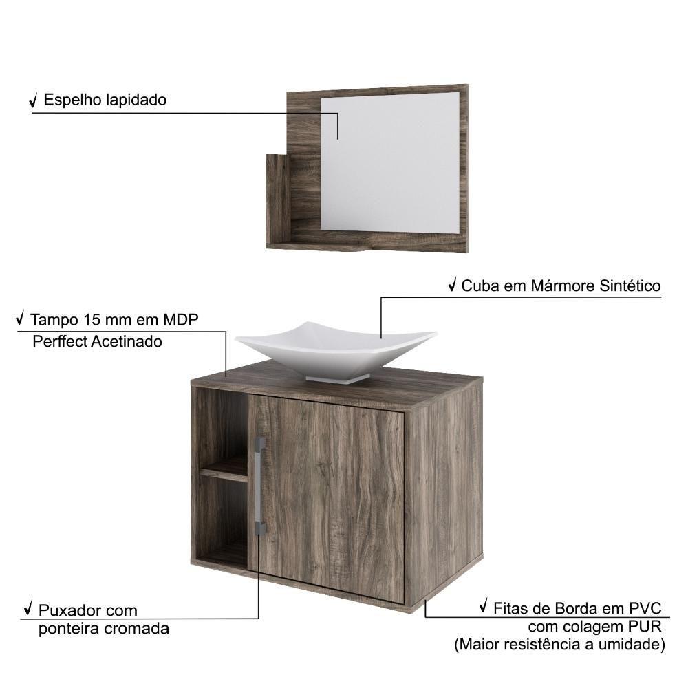 Conjunto Balcão C-cuba L38 E Espelheira Soft 600 Carvalho C-preto ônix Carvalho Dark