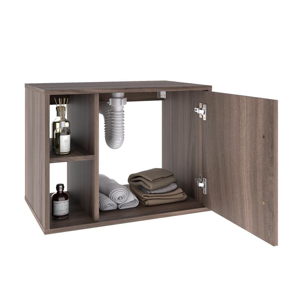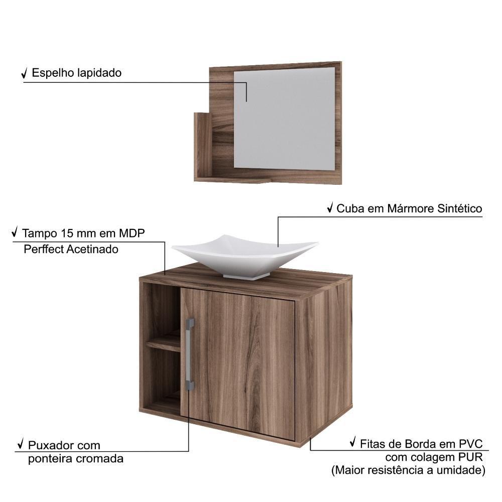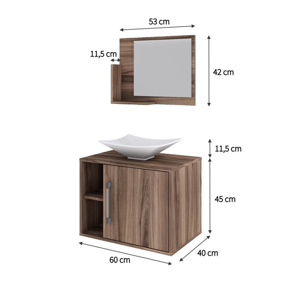 Conjunto Balcão C-cuba L38 E Espelheira Soft 600 Carvalho Dark C-preto ônix Nogal