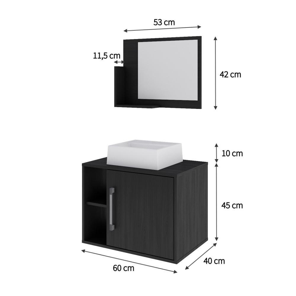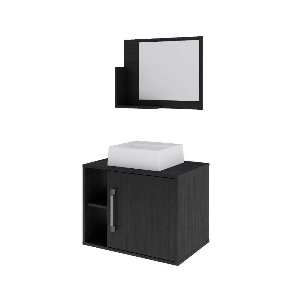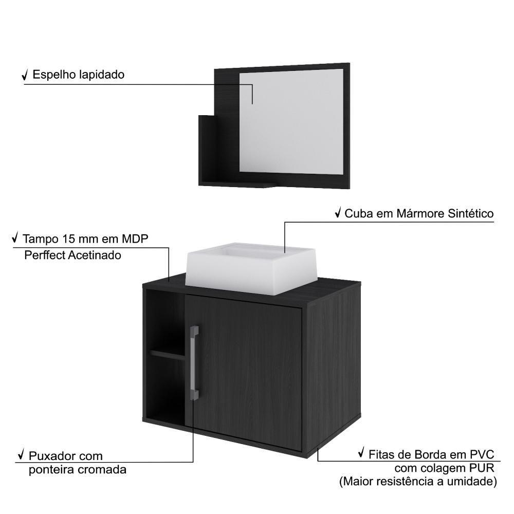 Conjunto Balcão C-cuba Q32 E Espelheira Soft 600 Branco Chess C-snow Preto ônix