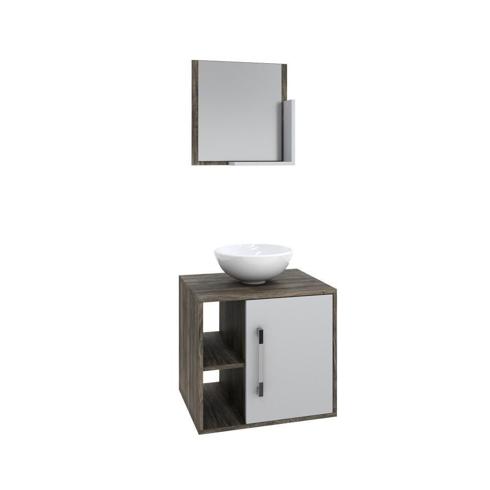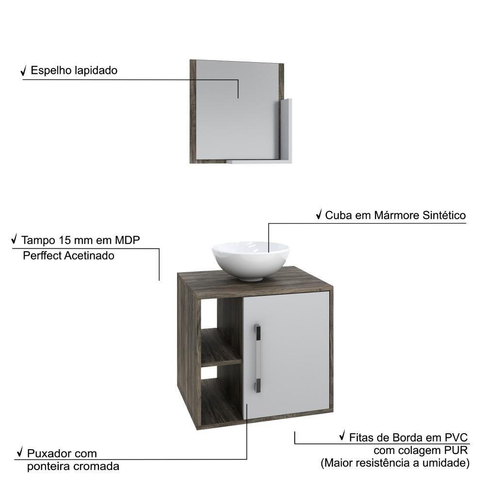 Conjunto Balcão C-cuba R30 E Espelheira Soft 500 Carvalho Dark Carvalho Dark C-branco Chess