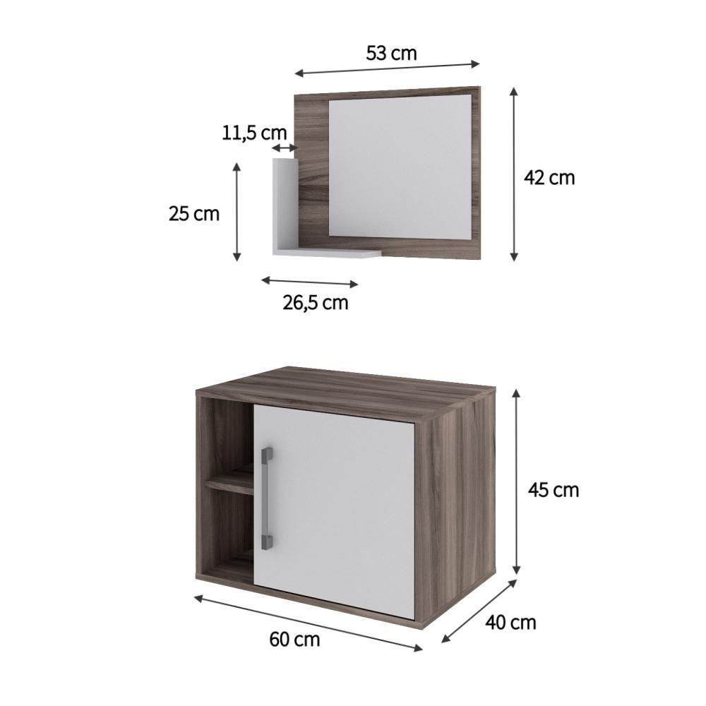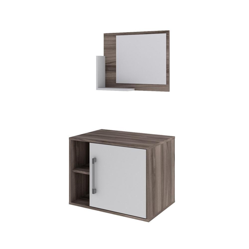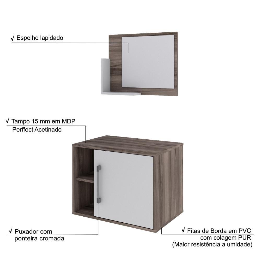 Conjunto Balcão E Espelheira Soft 600 Perffect Acetinado Nogal C-branco Chess