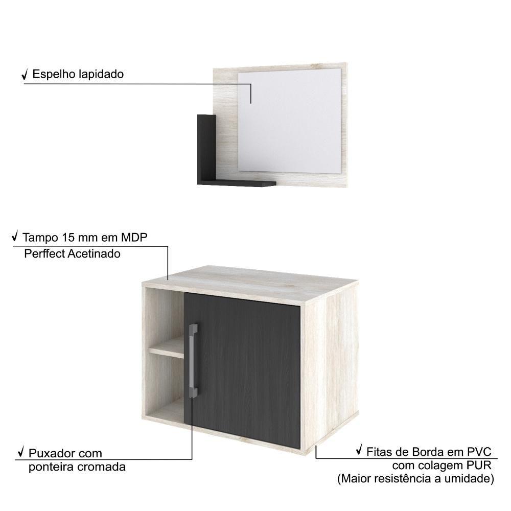 Conjunto Balcão E Espelheira Soft 600 Perffect Acetinado Snow C-preto ônix