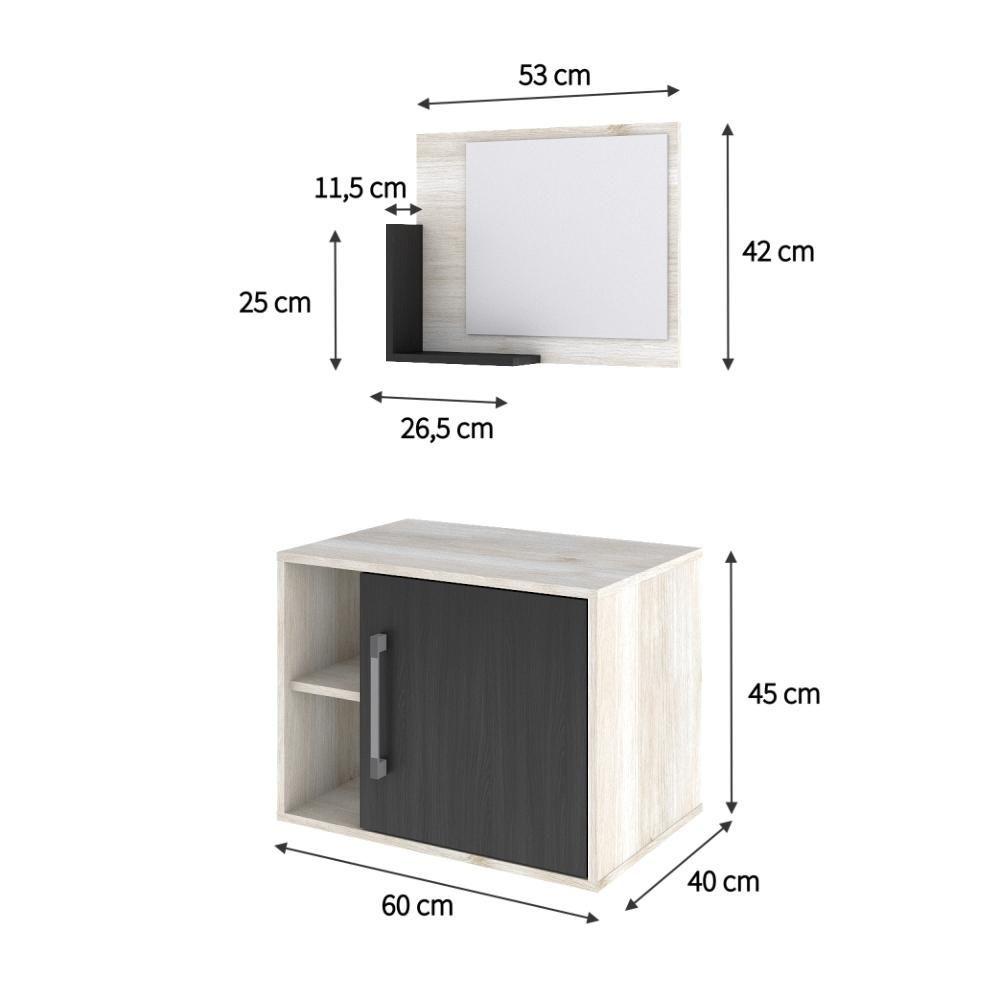 Conjunto Balcão E Espelheira Soft 600 Perffect Acetinado Snow C/preto ônixSobre o ProdutoConjunto Balcão e Espelheira GESF600 Perffect Acetinado Descrição do Produto: O Conjunto Balcão e Espelheira Soft 600 GESF600 tem design compacto, perfeito para pequenos espaços, conta com uma prateleira lateral e uma cuba de apoio, além da espelheira. A linha Basic traz móveis funcionais e de design tradicional, aliando simplicidade e estilo para seu ambiente de banheiro! Itens Inclusos: 1 Conjunto Balcão e Espelheira Dimensões dos Produtos: Gabinete: 60 x 40 x 45 cm Espelheira: 53 x 10,5 x 42 cm: Informações Logísticas (Comp. X Prof. X Alt.): 64 x 45 x 26 cm - Peso: 16,97 Kg Peso Total: 16,97 Kg Observações: Não acompanha acessórios decorativos. Imagens meramente ilustrativas. Informações Técnicas / Características: - Cor do Produto: Perffect Acetinado - Marca: Compace - Modelo: GESF600 - Linha: Basic - Material: Mdp - Acabamento: Perffect Acetinado - Escala de Brilho: Fosco - Fita de Borda: Pvc - Possui Portas: 1 - Tipo de Porta: Bater - Tipo da Dobradiça: Metálica - Material do Puxador: Abs - Possui Prateleiras: 2 - Peso Máximo por Prateleira: 1 kg Espelheira / 3 kg Balcão - Possui Pés: Não, suspenso - Possui Espelho: Sim - Possui Vidro: Sim - Acompanha Cuba / Lavatório: Não - Furação para Cuba / Lavatório: Não - Suporta Até (kg): 16 kg - Peso Lí.: 15,55Kg - Recomendações de Uso, Manutenção e Limpeza: Para a limpeza, utilize flanela seca ou pano macio levemente umedecido em água. Utilize um pano seco em seguida. Evite com produtos químicos (solventes, thinner, acetona, etc) e não utilize nenhum tipo de esponja de aço. - Necessita de Montagem: Sim / Acompanha Manual de Montagem - Complexidade da Montagem: Média: pode ser montado por mais de uma pessoa e/ou necessite de maior conhecimento para montagem. - Garantia: 6 meses Material: Mdp | Acabamento: Perffect Acetinado | Escala de Brilho: Fosco | Fita de Borda: Pvc | Possui Portas: 1 | Tipo de Porta: Bater | Tipo da Dobradiça: Metálica | Limite de unidades por venda: É possível comprar até 1 unidade por venda. | Comprimento: 60 | Largura: 40 | Quantidade máxima de pedido: 1 | Altura: 45 | Profundidade: 40 | Preço Tabelado: | Cor: Multicolorido | Certificação de teste externa: Não Aplicável | Baterias são necessárias?: false | Palavras-chave de Pesquisa: Não aplicável | Fonte de energia: Não aplicável | Fabricante: Compace | Peso do item: | da peça: | Componentes incluídos: | Exige montagem: | Principais Características do Produto 2: | Principais Características do Produto 1: | Principais Características do Produto 0: | Dimensões do item P x L x A: | Is Fragile: | do modelo: | de caixas: | Quantidade de itens: Cor: Snow C/Preto Ônix