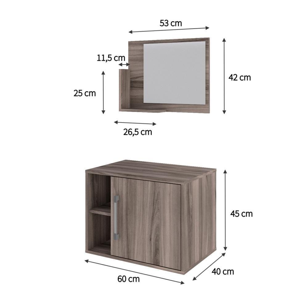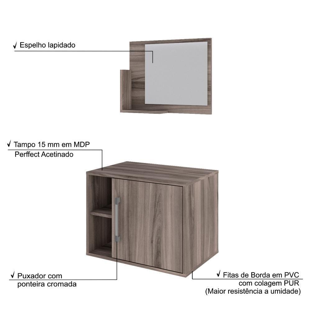 Conjunto Balcão E Espelheira Soft 600 Perffect Acetinado Nogal