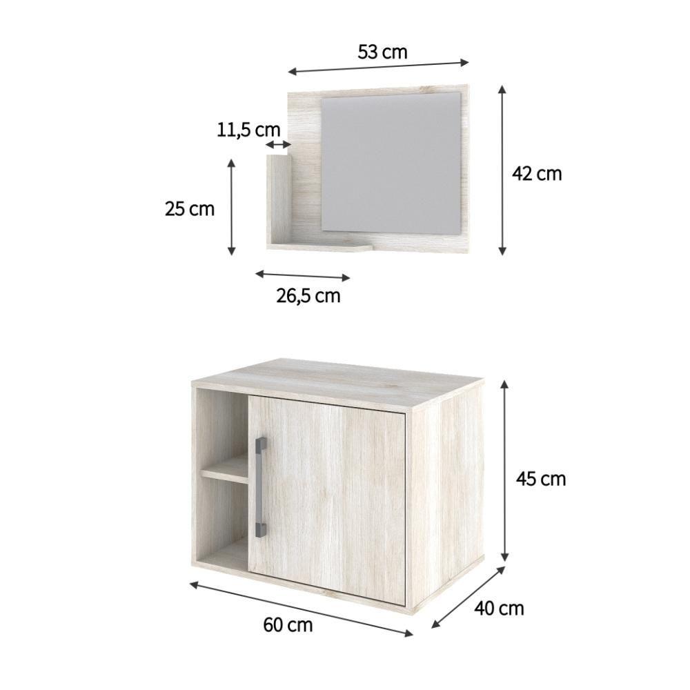 Conjunto Balcão E Espelheira Soft 600 Perffect Acetinado SnowSobre o ProdutoConjunto Balcão e Espelheira GESF600 Perffect Acetinado Descrição do Produto: O Conjunto Balcão e Espelheira Soft 600 GESF600 tem design compacto, perfeito para pequenos espaços, conta com uma prateleira lateral e uma cuba de apoio, além da espelheira. A linha Basic traz móveis funcionais e de design tradicional, aliando simplicidade e estilo para seu ambiente de banheiro! Itens Inclusos: 1 Conjunto Balcão e Espelheira Dimensões dos Produtos: Gabinete: 60 x 40 x 45 cm Espelheira: 53 x 10,5 x 42 cm: Informações Logísticas (Comp. X Prof. X Alt.): 64 x 45 x 26 cm - Peso: 16,97 Kg Peso Total: 16,97 Kg Observações: Não acompanha acessórios decorativos. Imagens meramente ilustrativas. Informações Técnicas / Características: - Cor do Produto: Perffect Acetinado - Marca: Compace - Modelo: GESF600 - Linha: Basic - Material: Mdp - Acabamento: Perffect Acetinado - Escala de Brilho: Fosco - Fita de Borda: Pvc - Possui Portas: 1 - Tipo de Porta: Bater - Tipo da Dobradiça: Metálica - Material do Puxador: Abs - Possui Prateleiras: 2 - Peso Máximo por Prateleira: 1 kg Espelheira / 3 kg Balcão - Possui Pés: Não, suspenso - Possui Espelho: Sim - Possui Vidro: Sim - Acompanha Cuba / Lavatório: Não - Furação para Cuba / Lavatório: Não - Suporta Até (kg): 16 kg - Peso Lí.: 15,55Kg - Recomendações de Uso, Manutenção e Limpeza: Para a limpeza, utilize flanela seca ou pano macio levemente umedecido em água. Utilize um pano seco em seguida. Evite com produtos químicos (solventes, thinner, acetona, etc) e não utilize nenhum tipo de esponja de aço. - Necessita de Montagem: Sim / Acompanha Manual de Montagem - Complexidade da Montagem: Média: pode ser montado por mais de uma pessoa e/ou necessite de maior conhecimento para montagem. - Garantia: 6 meses Material: Mdp | Acabamento: Perffect Acetinado | Escala de Brilho: Fosco | Fita de Borda: Pvc | Possui Portas: 1 | Tipo de Porta: Bater | Tipo da Dobradiça: Metálica | Limite de unidades por venda: É possível comprar até 1 unidade por venda. | Comprimento: 60 | Largura: 40 | Quantidade máxima de pedido: 1 | Altura: 45 | Profundidade: 40 | Preço Tabelado: | Cor: Multicolorido | Certificação de teste externa: Não Aplicável | Baterias são necessárias?: false | Palavras-chave de Pesquisa: Não aplicável | Fonte de energia: Não aplicável | Fabricante: Compace | Peso do item: | da peça: | Componentes incluídos: | Exige montagem: | Principais Características do Produto 2: | Principais Características do Produto 1: | Principais Características do Produto 0: | Dimensões do item P x L x A: | Is Fragile: | do modelo: | de caixas: | Quantidade de itens: Cor: Snow