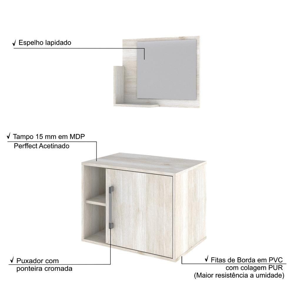 Conjunto Balcão E Espelheira Soft 600 Perffect Acetinado Snow