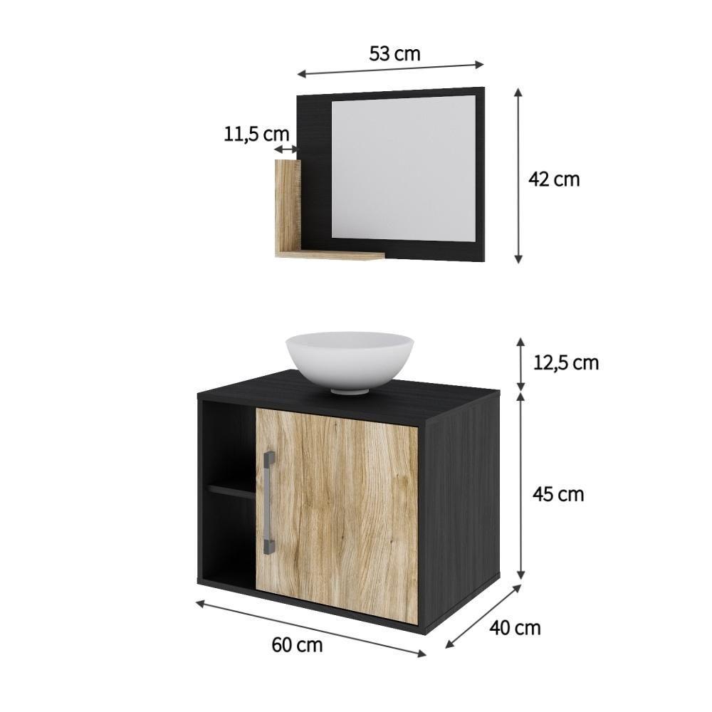 Conjunto Balcão C-cuba R30 E Espelheira Soft 600 Preto ônix C-branco Chess Preto ônix C-carvalho