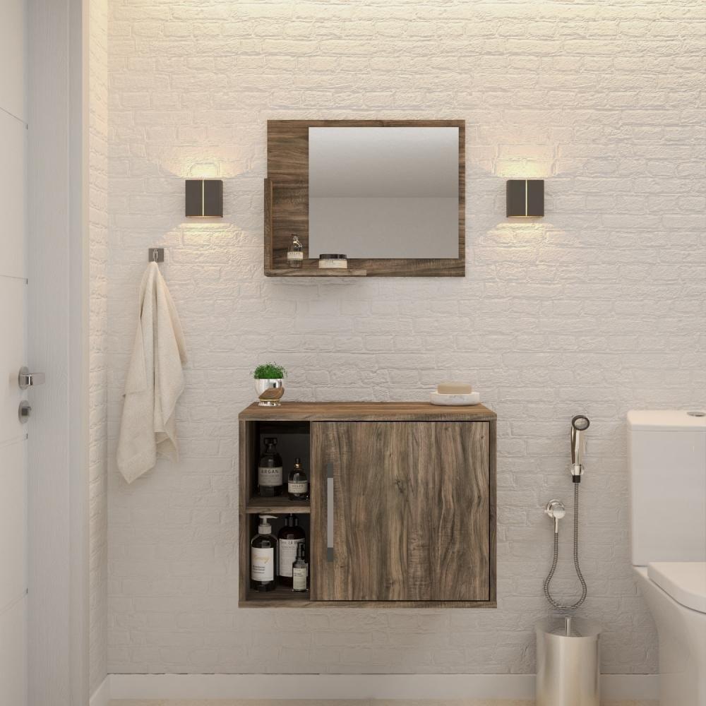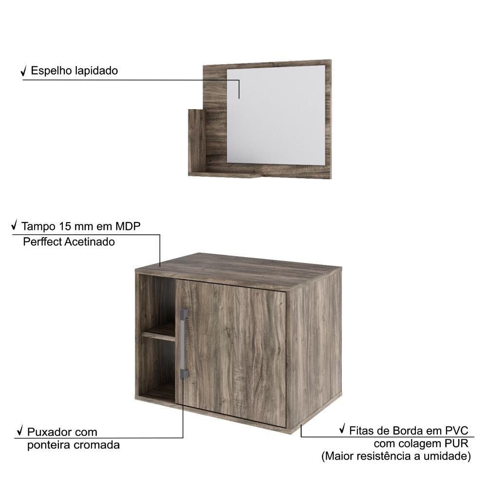 Conjunto Balcão E Espelheira Soft 600 Perffect Acetinado Carvalho Dark