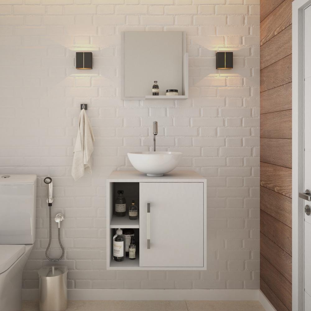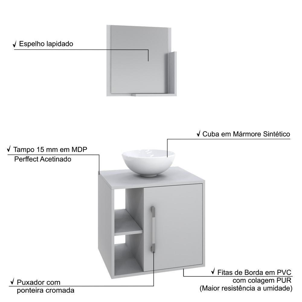 Conjunto Balcão C-cuba R30 E Espelheira Soft 500 - Branco Chess C-branco Chess Branco Chess C-branco Chess