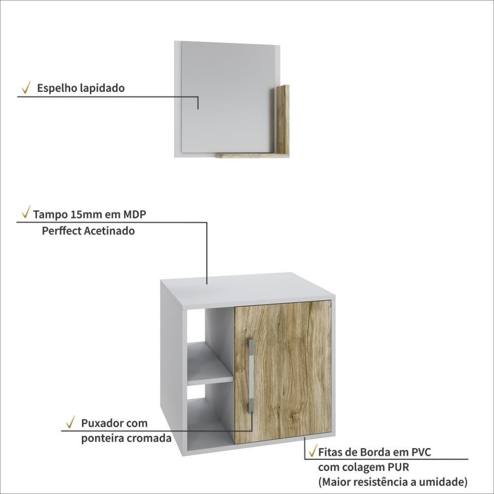Conjunto Balcão E Espelheira Soft 500 Perffect Acetinado Branco Chess C-carvalho