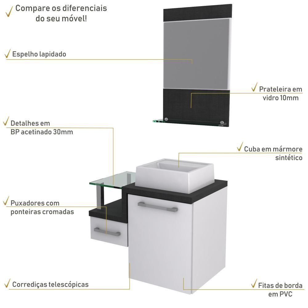 Conjunto Balcão C-cuba Q32 E Espelheira Legno 631 Branco Chess C-nogal Branco Chess C-preto ônix