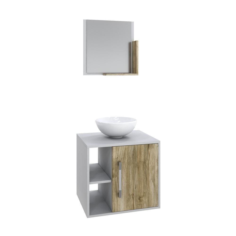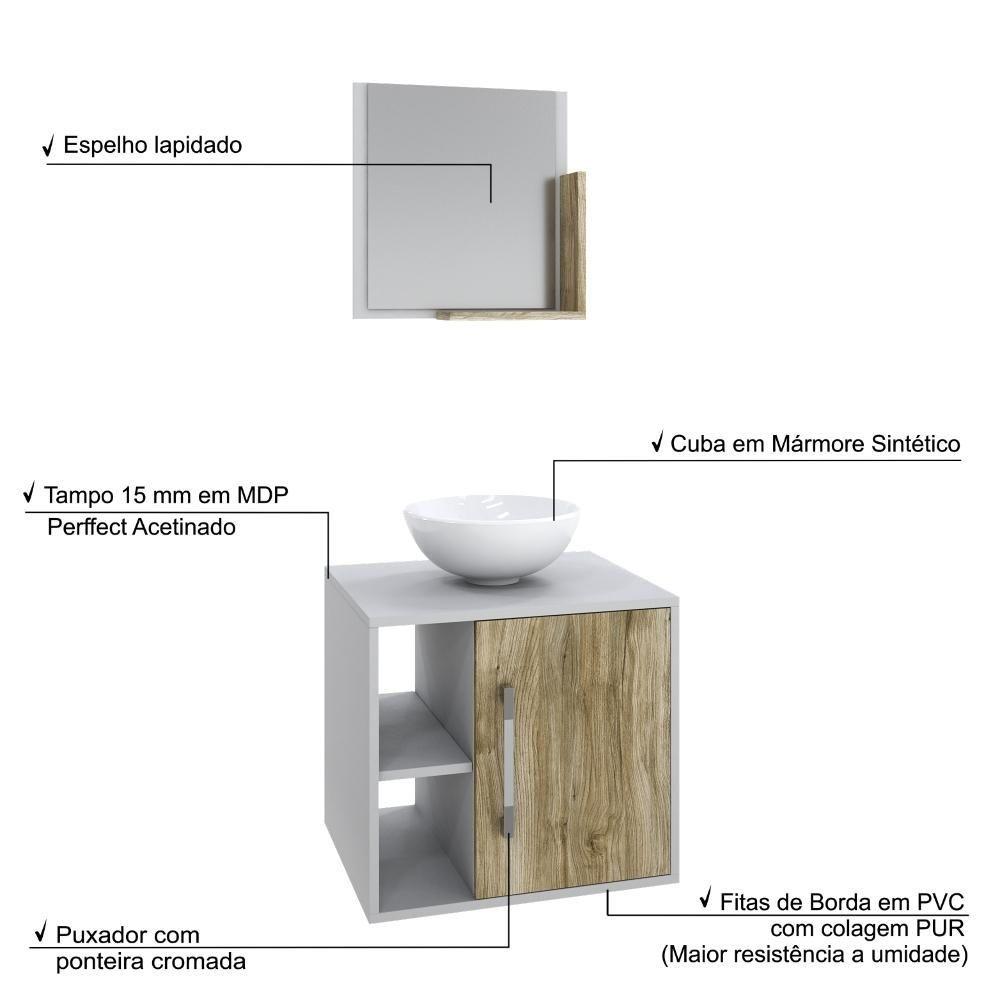 Conjunto Balcão C-cuba R30 E Espelheira Soft 500 Branco Chess Branco Chess C-carvalho