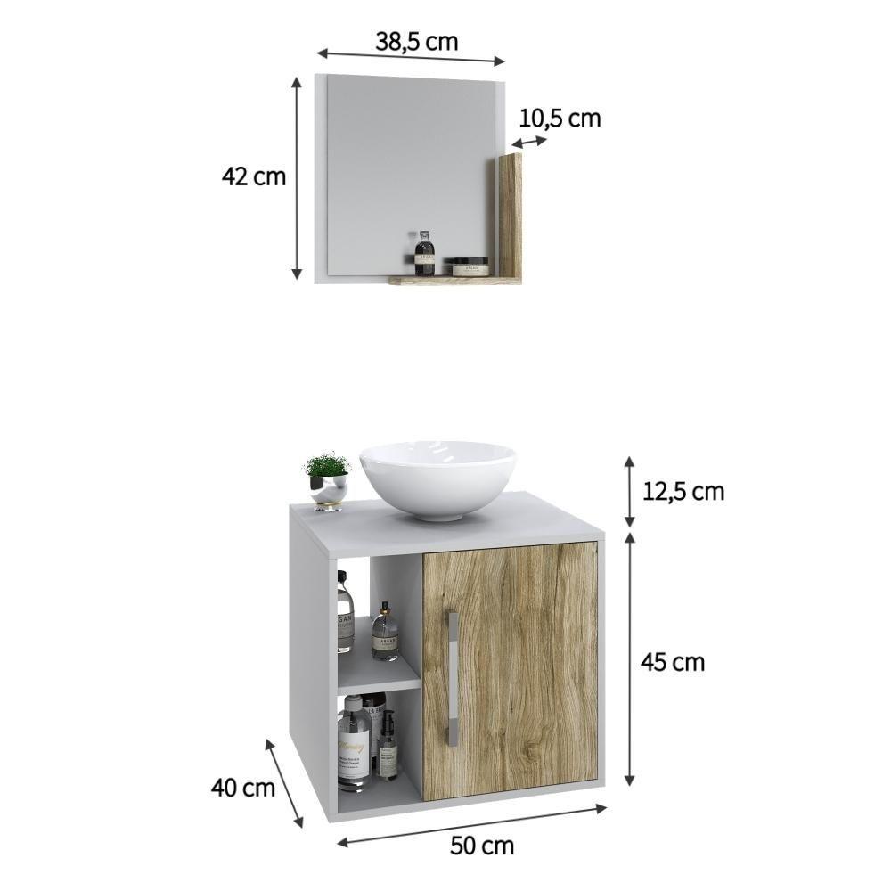 Conjunto Balcão C/cuba R30 E Espelheira Soft 500 Branco Chess Branco Chess C/carvalhoSobre o ProdutoConjunto Balcão C/Cuba R30 e Espelheira Soft 500 Branco ChessDescrição do Produto:O Conjunto Balcão C/Cuba e Espelheira Soft 500 KTSF500 tem design compacto, perfeito para pequenos espaços, conta com uma prateleira lateral e uma cuba de apoio, além da linha Basic traz móveis funcionais e de design tradicional, aliando simplicidade e estilo para seu ambiente de banheiro!Itens Inclusos:1 Conjunto Balcão C/Cuba e EspelheiraDimensões dos Produtos:Gabinete: 50 x 40 x 45 cmEspelheira: 40 x 10 x 42 cmCuba 30,5 x 30,5 x 12,5 cmInformações Logísticas (Comp. X Prof. X Alt.) 54 x 42 x 28 cm - Peso: 18,58 KgPeso Total: 18,58 KgObservações:Não acompanha acessórios decorativos. Imagens meramente ilustrativas.Informações Técnicas / Características:- Cor do Produto: Branco Chess- Cor do Predominante: Branco- Marca: Compace- Modelo: KTSF500- Linha: Basic- Material: Mdp - Acabamento: Perffect Acetinado- Escala de Brilho: Fosco- Fita de Borda: Pvc- Possui Portas: 1- Tipo de Porta: Bater- Tipo da Dobradiça: Metálica - Material do Puxador: Abs- Possui Prateleiras: 2- Peso Máximo por Prateleira: 1 kg Espelheira / 3 kg Balcão- Possui Pés: Não, suspenso - Possui Espelho: Sim- Possui Vidro: Sim- Acompanha Cuba / Lavatório: Sim, de Mármore Sintético- Furação para Cuba / Lavatório: Não- Tipo da Cuba: Apoio- Cor da Cuba: Branca- Suporta Até (kg): 16 kg - Peso Lí.: 17,35Kg- Recomendações de Uso, Manutenção e Limpeza: Para a limpeza, utilize flanela seca ou pano macio levemente umedecido em água. Utilize um pano seco em seguida. Evite com produtos químicos (solventes, thinner, acetona, etc) e não utilize nenhum tipo de esponja de aço.- Necessita de Montagem: Sim / Acompanha Manual de Montagem- Complexidade da Montagem: Média: pode ser montado por mais de uma pessoa e/ou necessite de maior conhecimento para montagem.- Garantia: 6 meses Material: Mdp | Acabamento: Perffect Acetinado | Escala de Brilho: Fosco | Fita de Borda: Pvc | Possui Portas: 1 | Tipo de Porta: Bater | Tipo da Dobradiça: Metálica | Limite de unidades por venda: É possível comprar até 1 unidade por venda. | Tipo de produto: Gabinete de banheiro | Quantidade máxima de pedido: 1 | Fabricante: Compace | Comprimento: 50 | Largura: 40 | Altura: 45 | Profundidade: 45 | Preço trabelado: | Componentes incluídos: | Principais Características do Produto 0: | Baterias são necessárias?: | Principais Características do Produto 2: | Cor: | Principais Características do Produto 1: | Certificação de teste externa: | Palavras-chave de Pesquisa: | Is Fragile: | Dimensões do item P x L x A: | Exige montagem: | da peça: | Peso do item: | do modelo: | Quantidade de itens: | de caixas: Cor: Branco Chess C/Carvalho