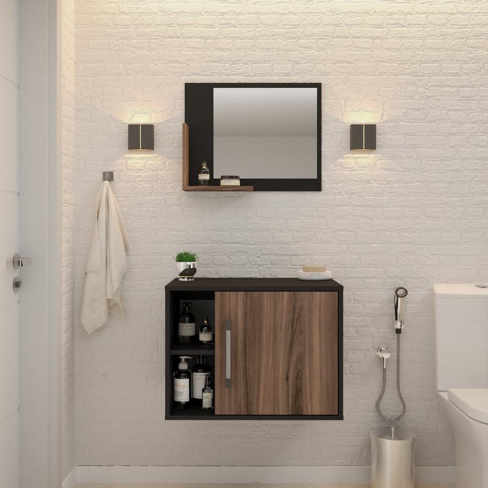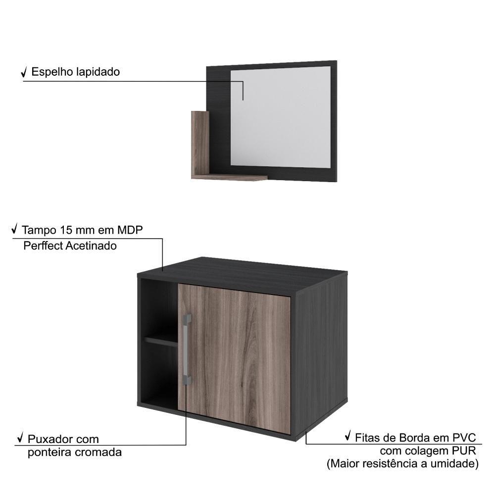 Conjunto Balcão E Espelheira Soft 600 Perffect Acetinado Preto ônix C-nogal