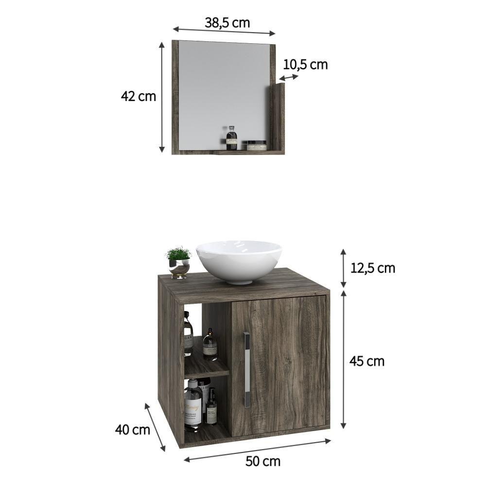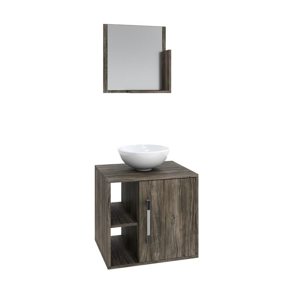 Conjunto Balcão C-cuba R30 E Espelheira Soft 500 Carvalho C-preto ônix Carvalho Dark