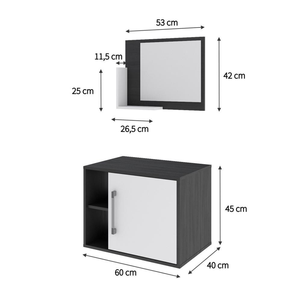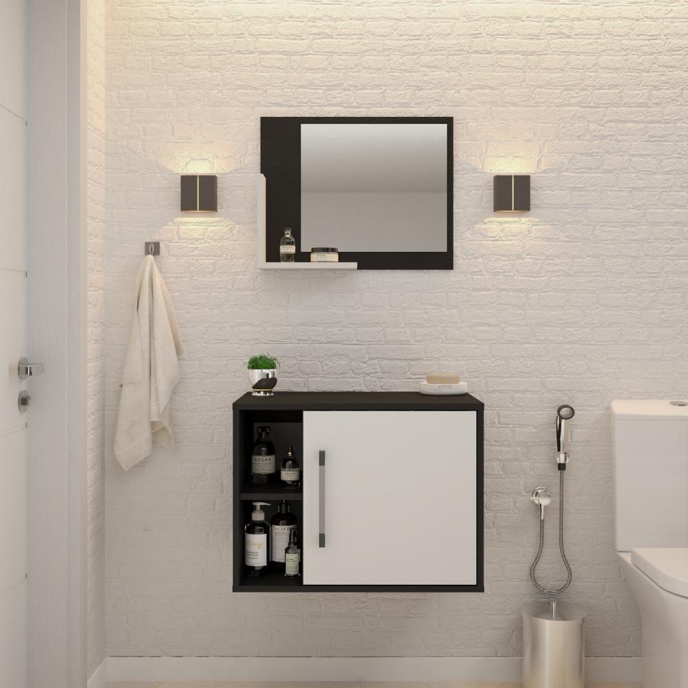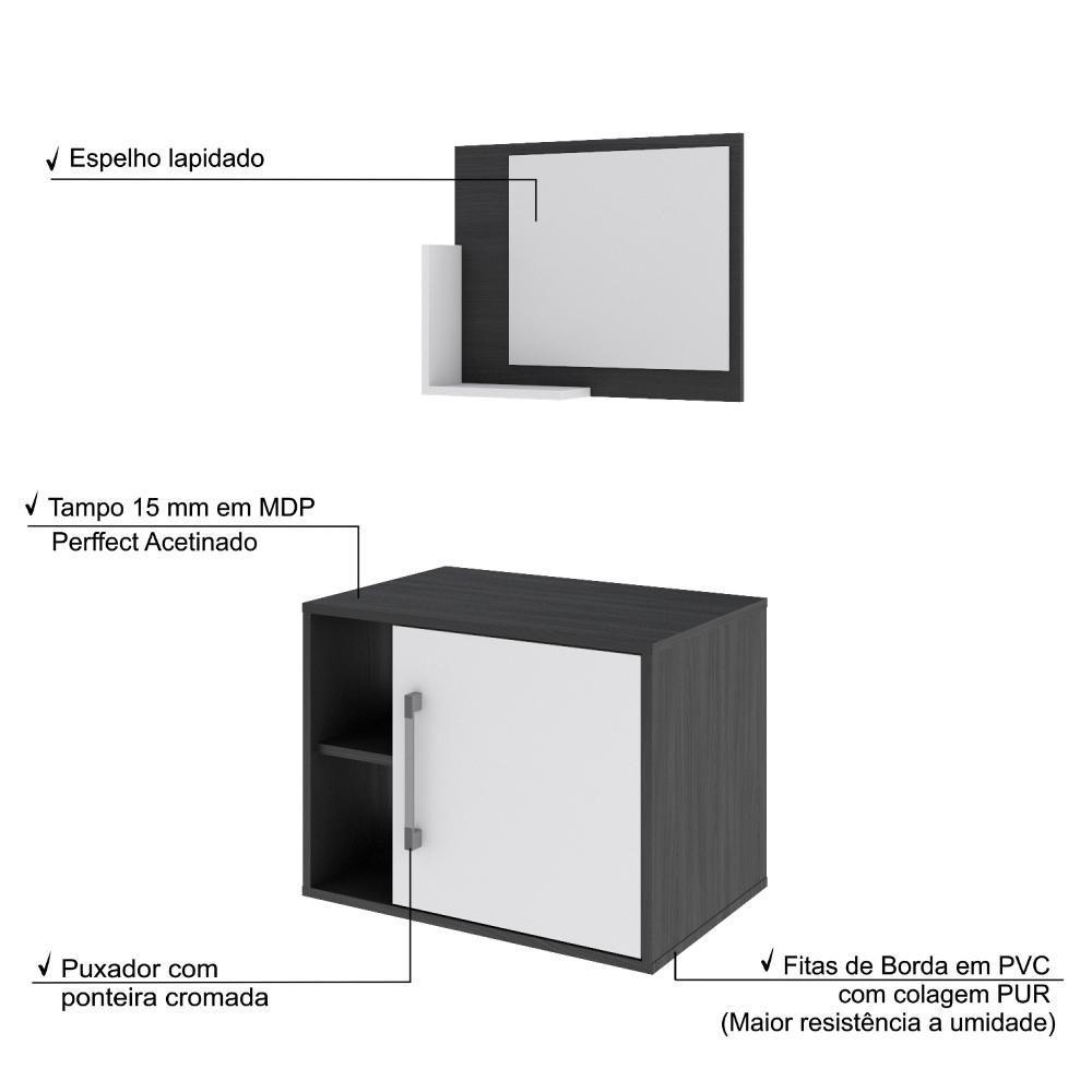 Conjunto Balcão E Espelheira Soft 600 Perffect Acetinado Preto ônix C-branco Chess
